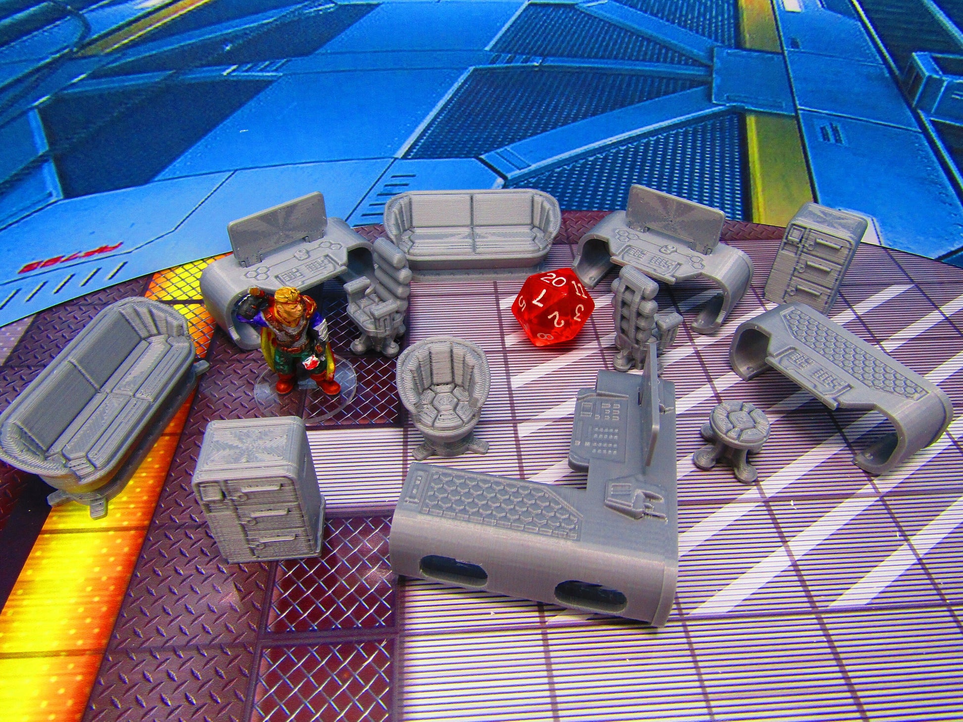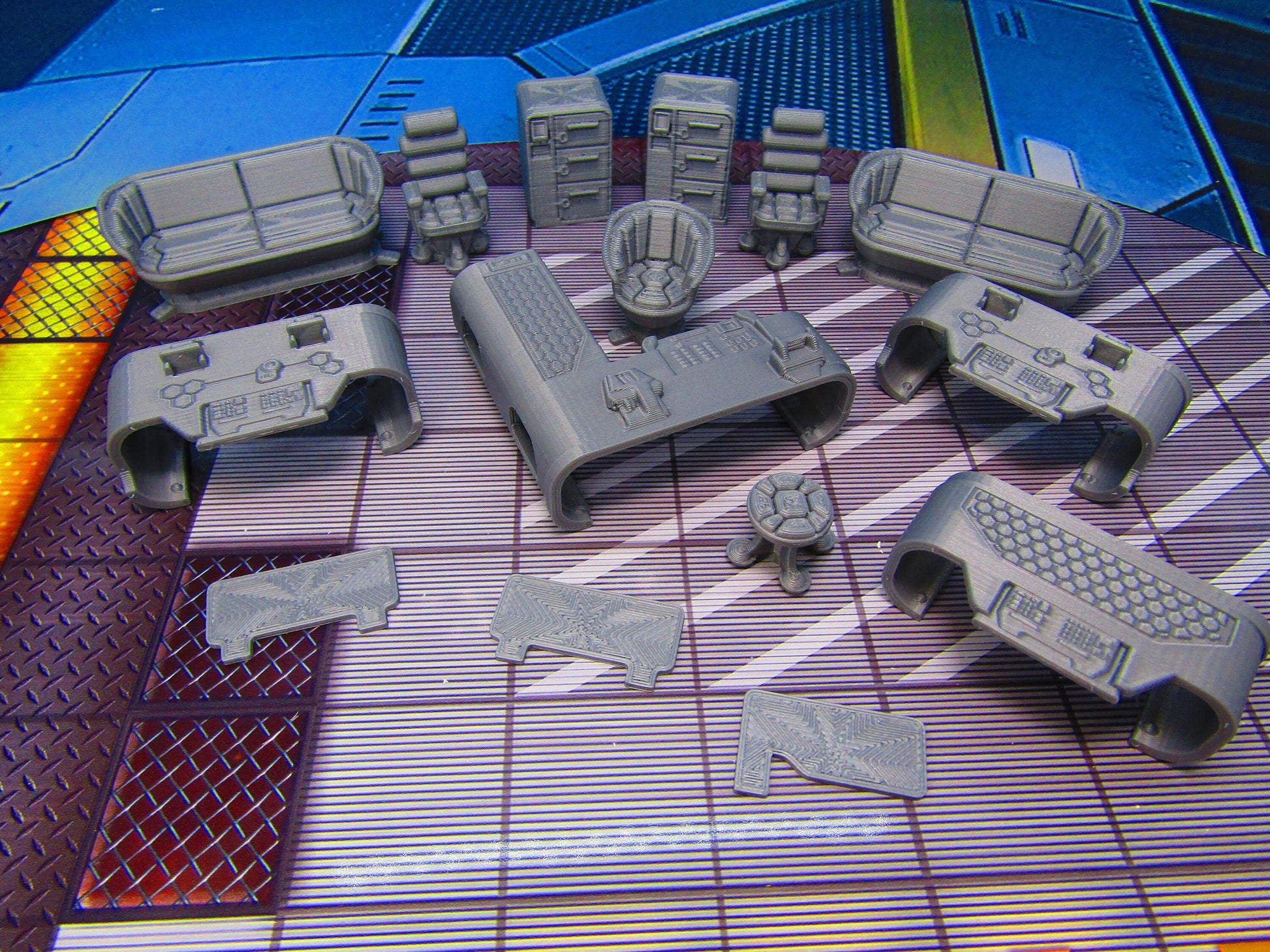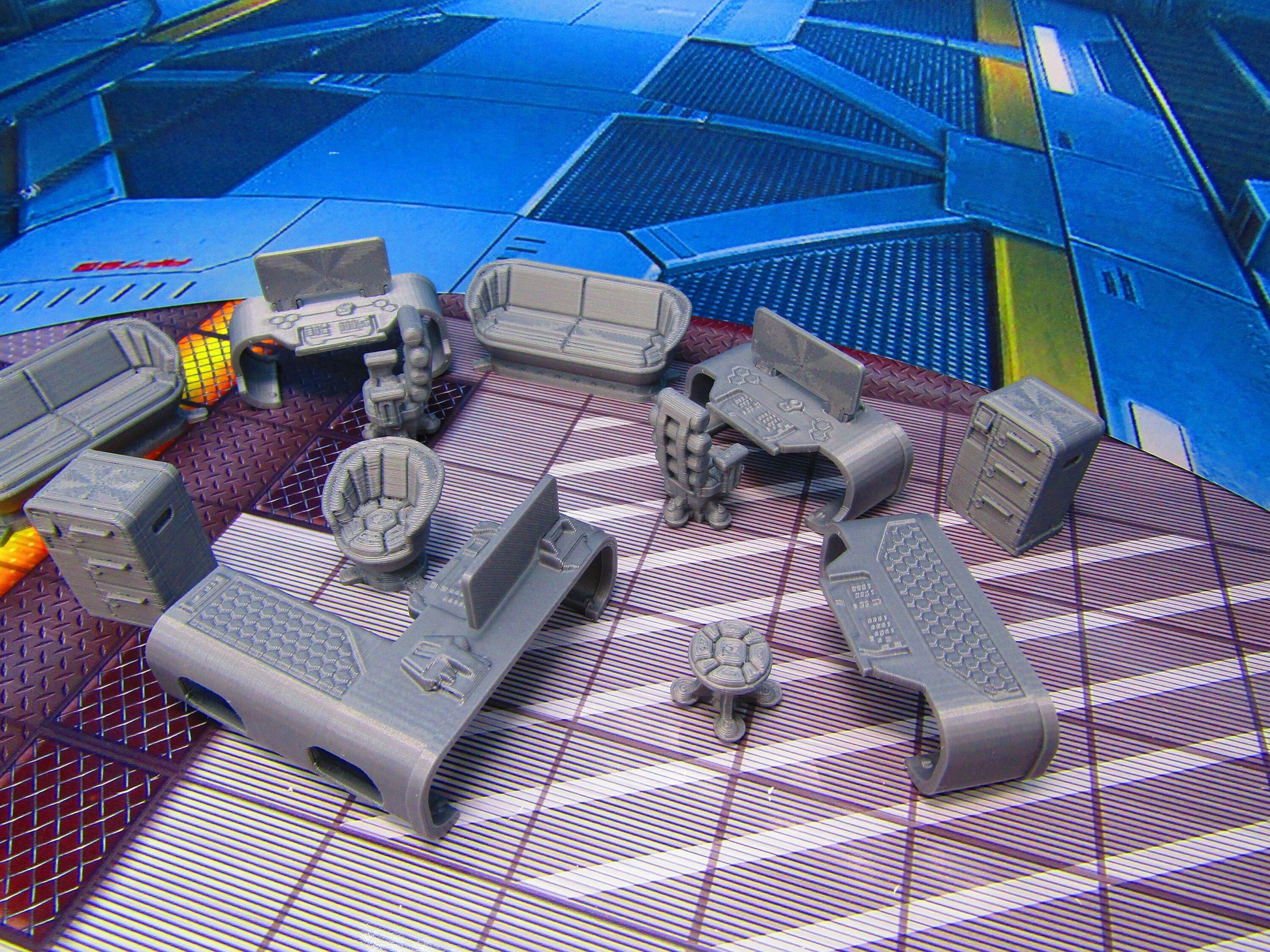 12 Piece Office Furniture Desks Chairs Terrain Scenery Miniature 3D Printed Model 28/32mm Scale Sci Fi Science Fiction RPG Tabletop Gaming
