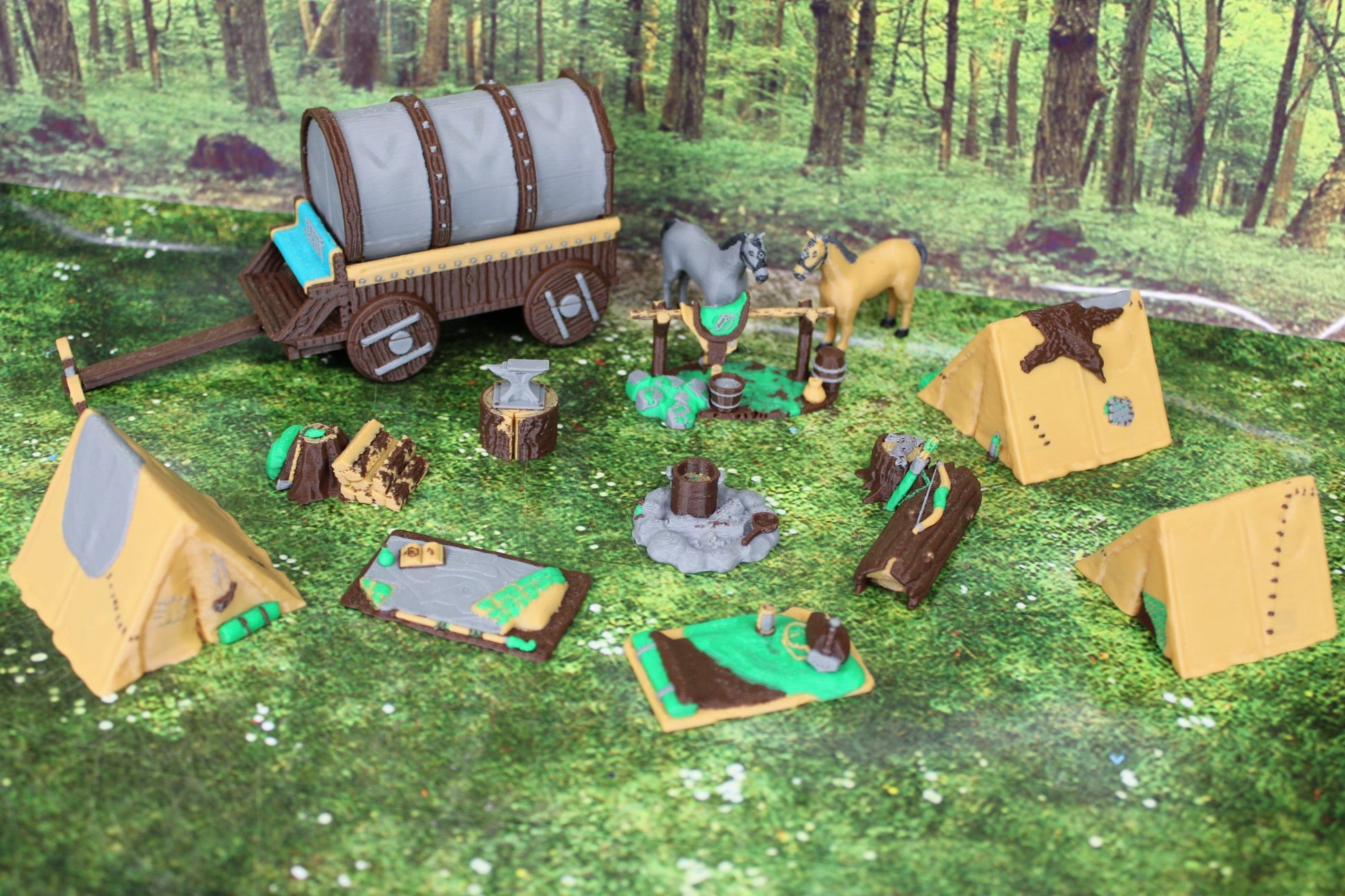 13pc Deluxe Tent Camp Set w/ Horses Wagons Campfire etc. in Color Scatter Terrain Scenery Mini Miniature Tabletop Gaming Wargaming D&D
