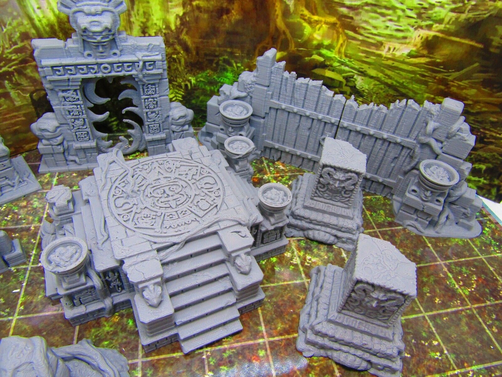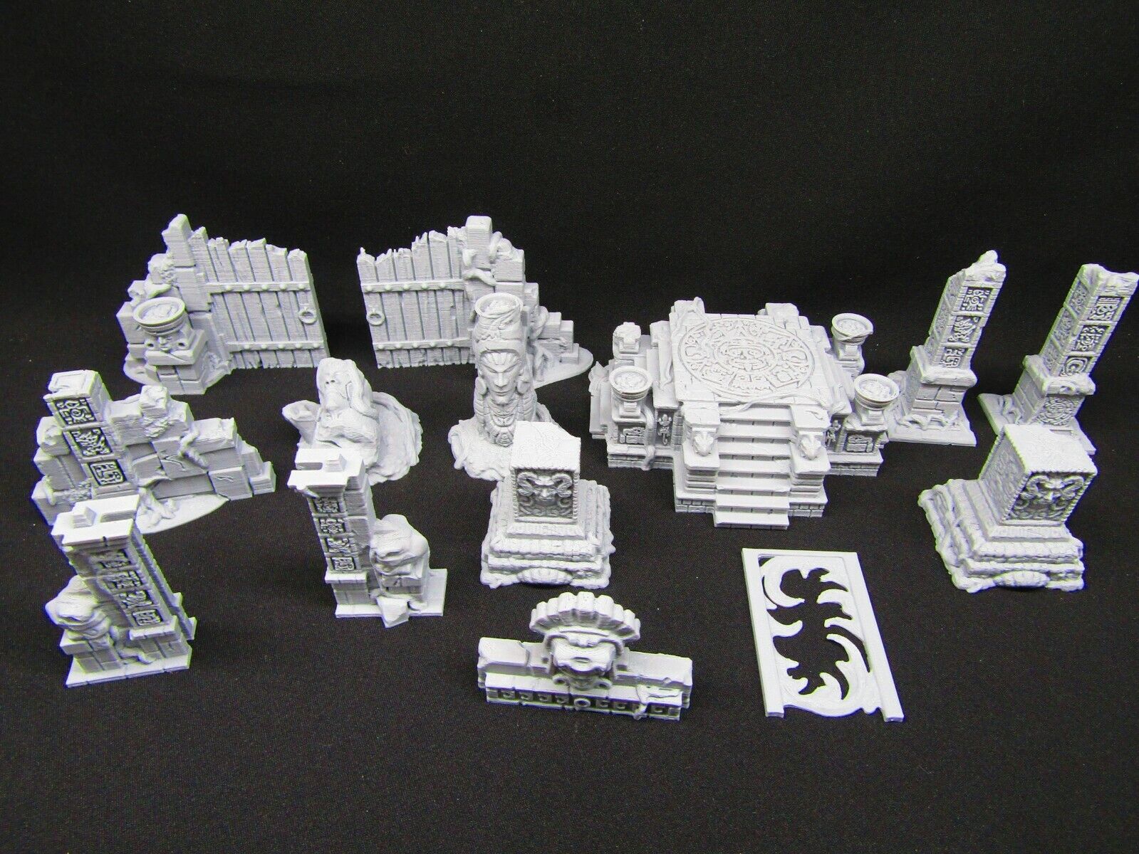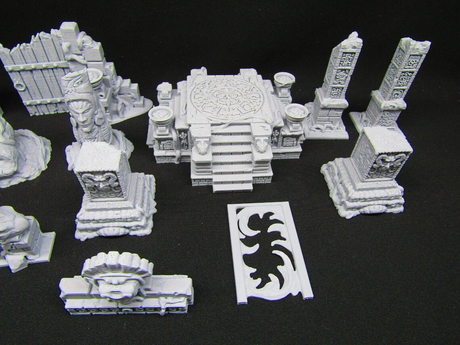 14pc Ancient Jungle Temple Ruins Scatter Terrain Scenery 3D Printed Model