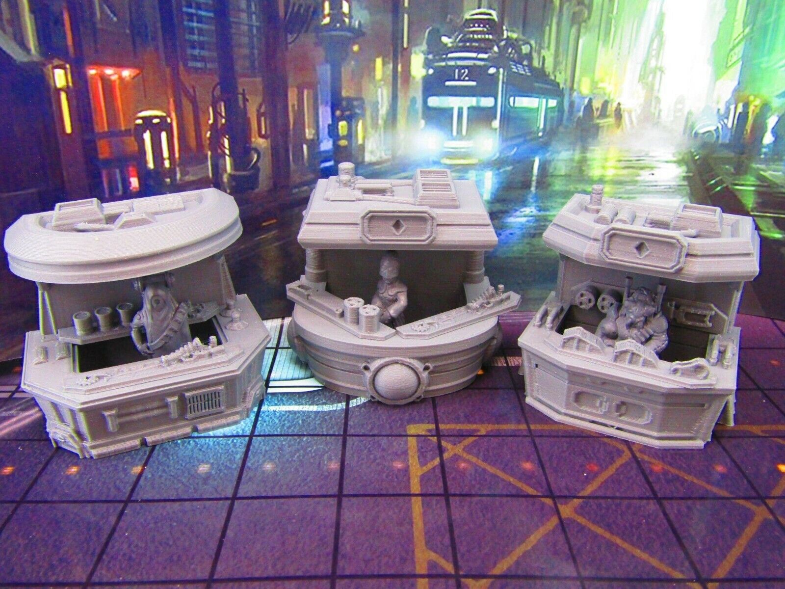 15pc Set of 3 Sci Fi Black Market Stalls, Wares, & Merchants Miniatures Mini Set