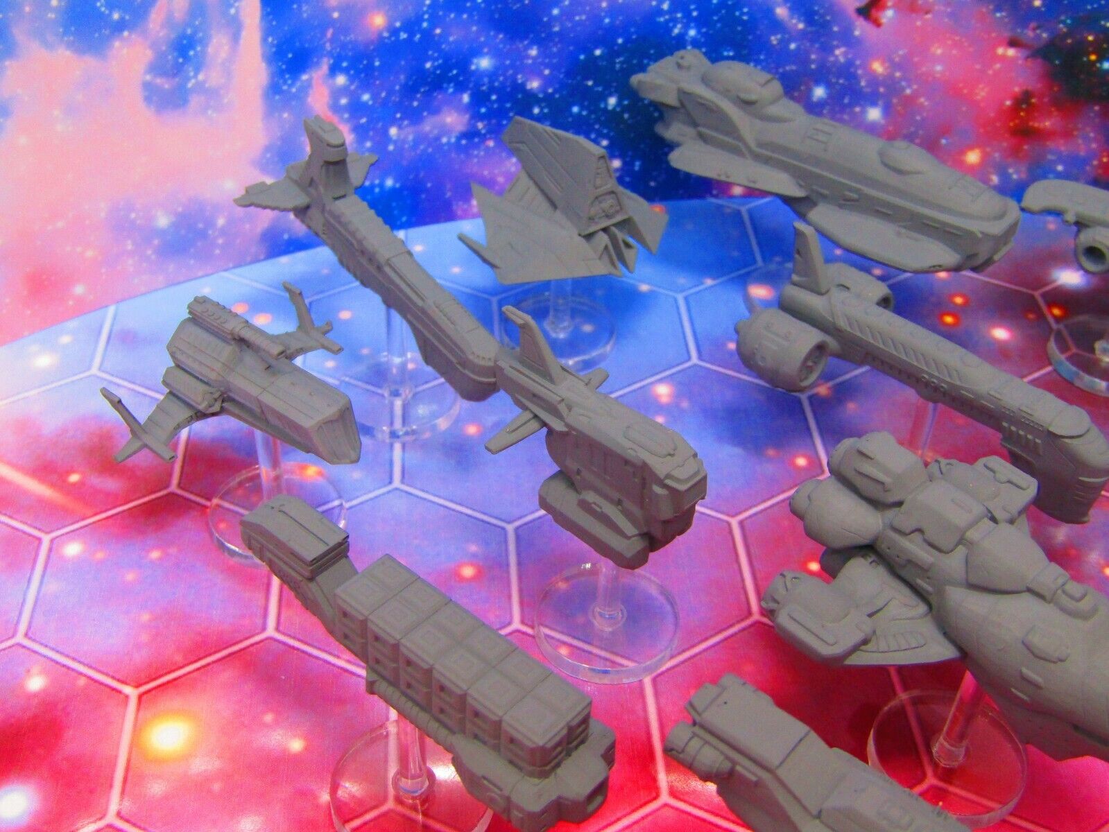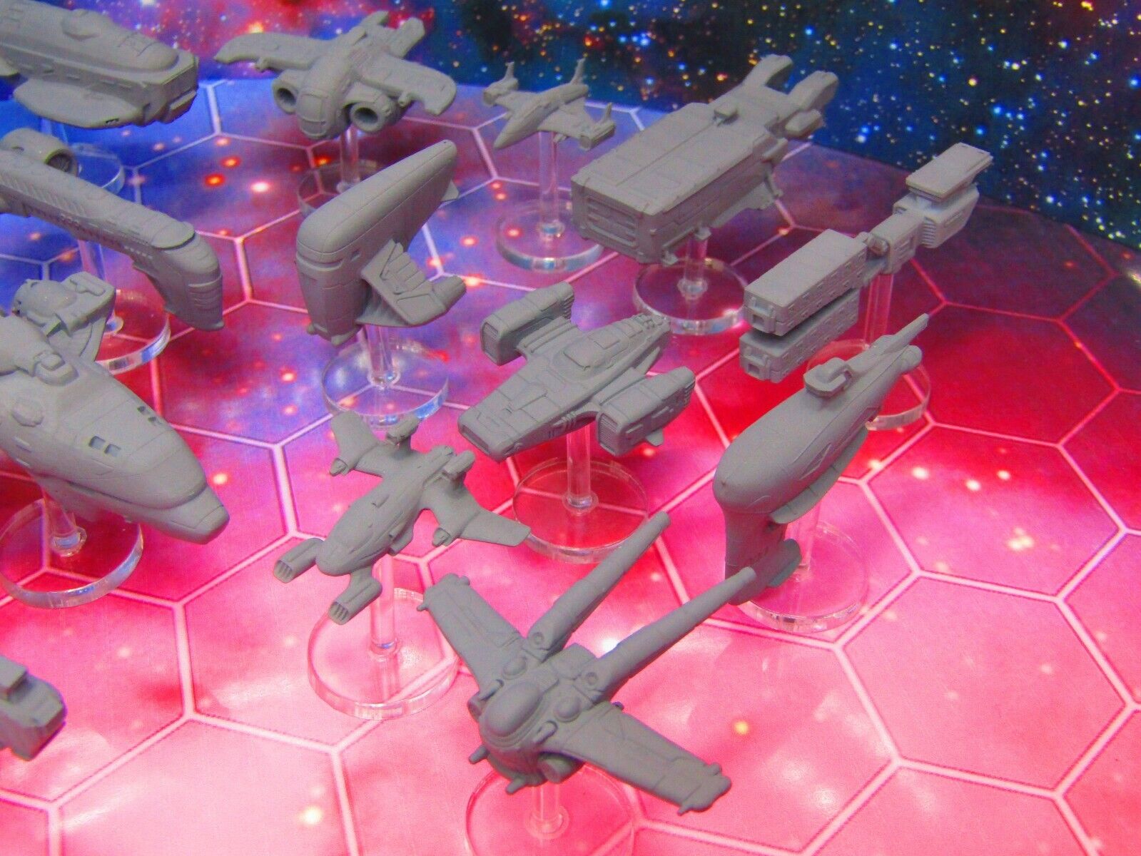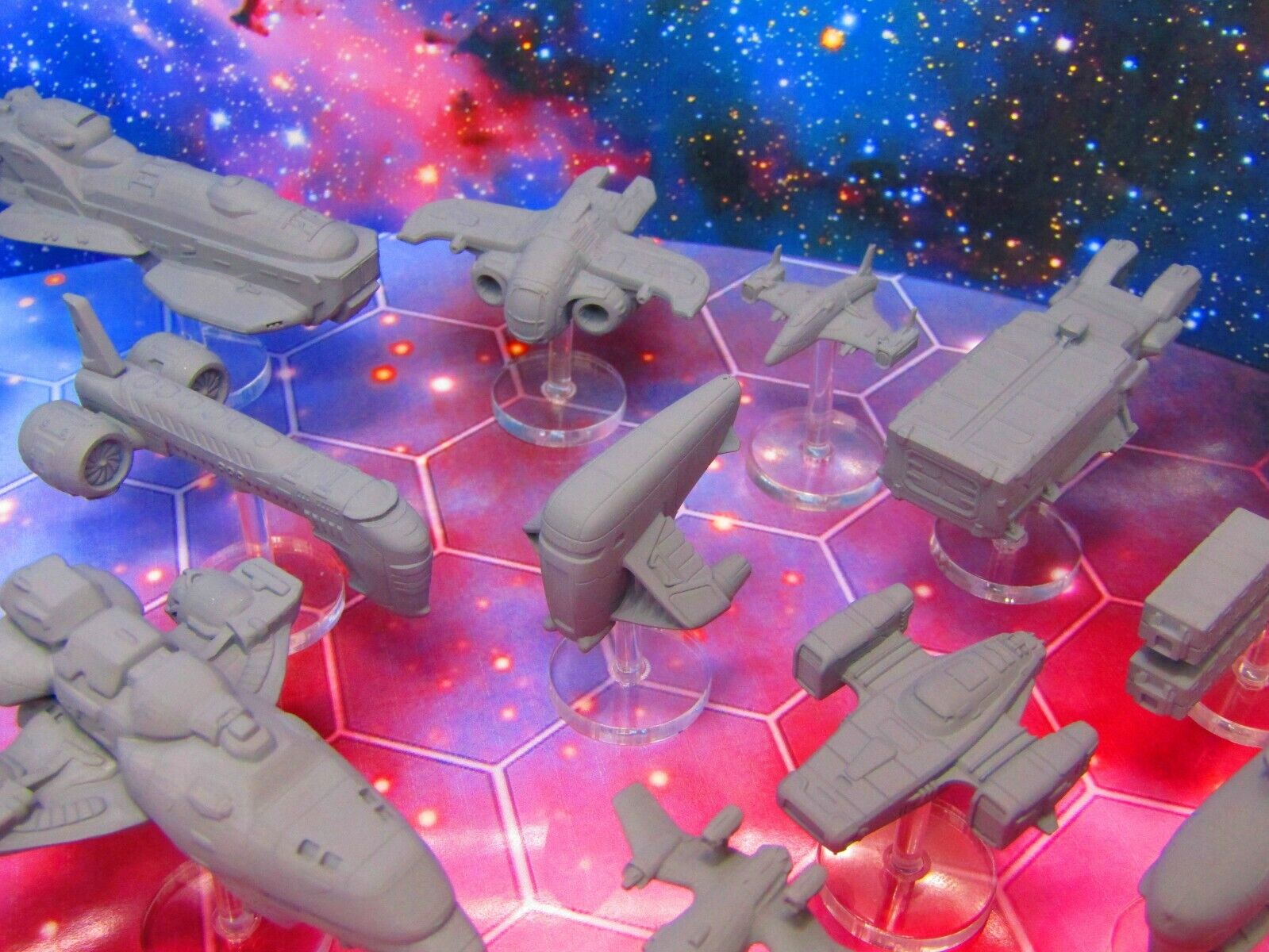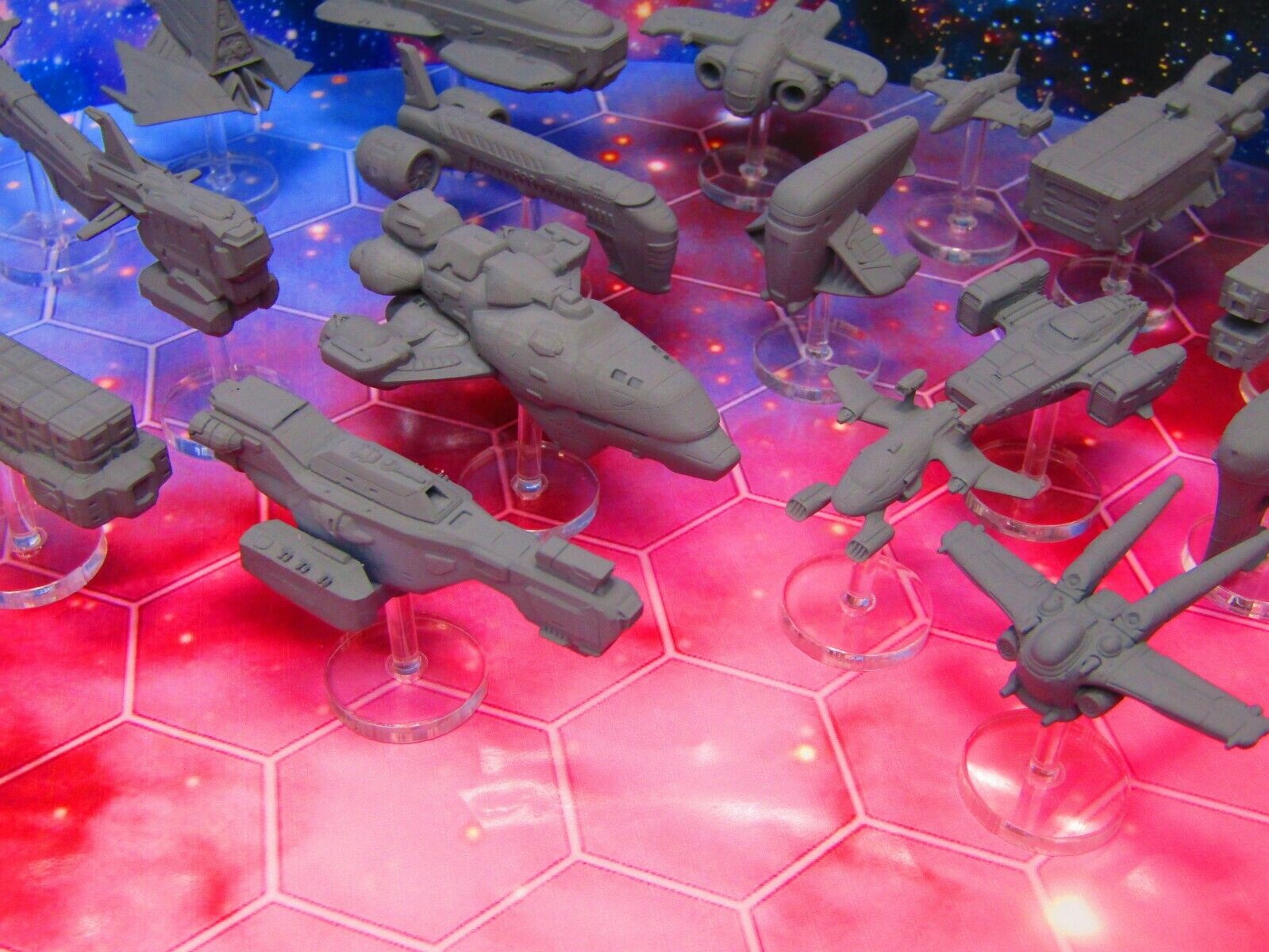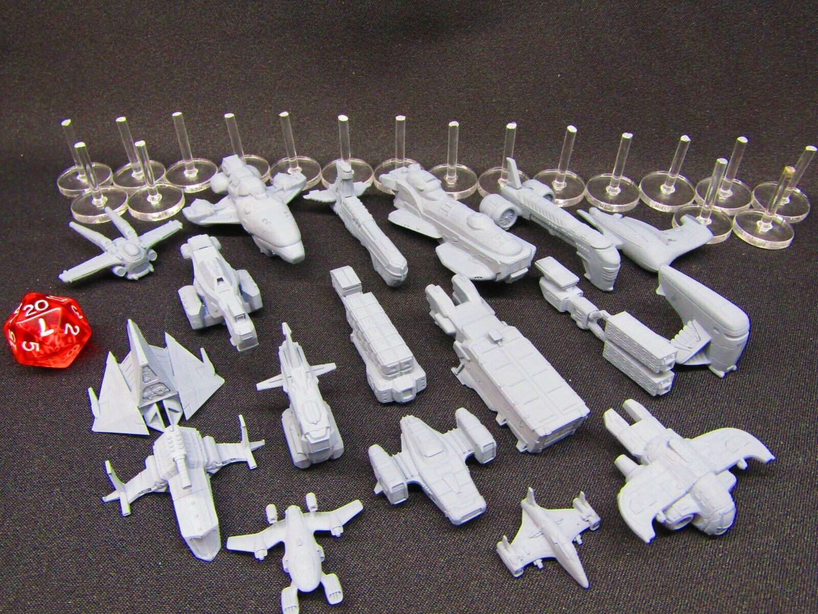 18pc Civilian Fleet and Transport Space War Gaming Set w/ Flight Stands & Rods