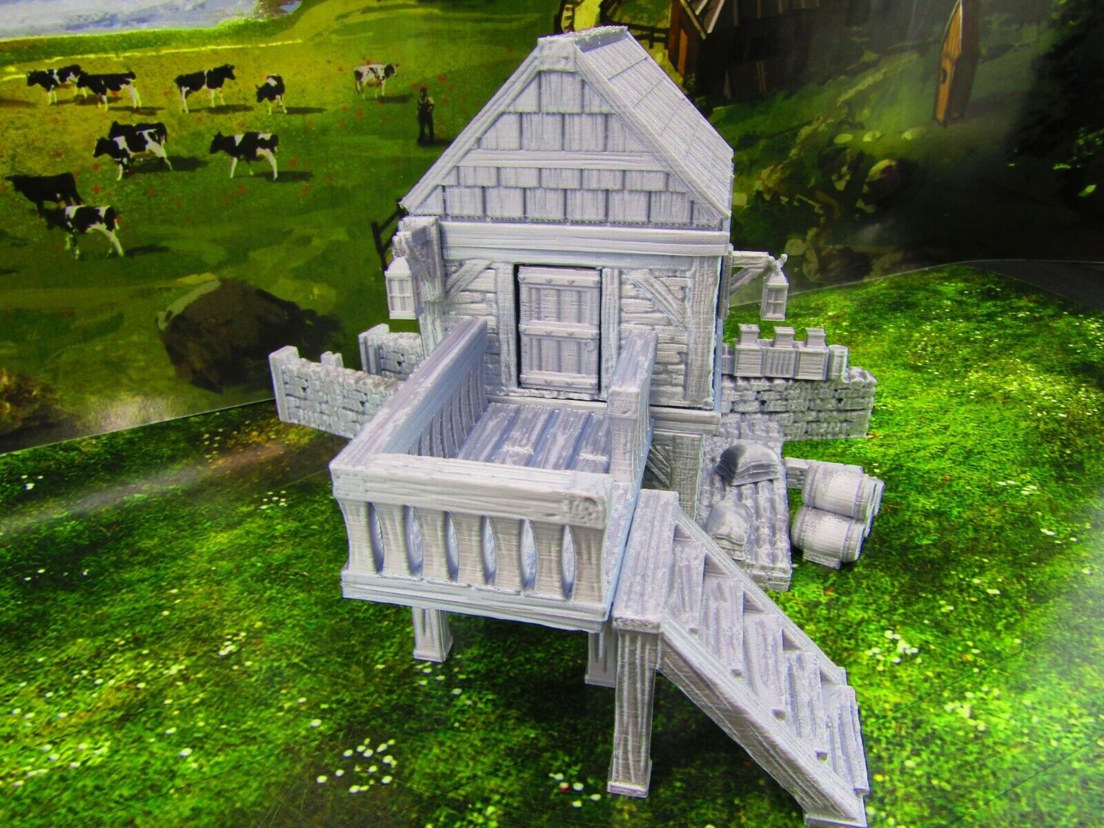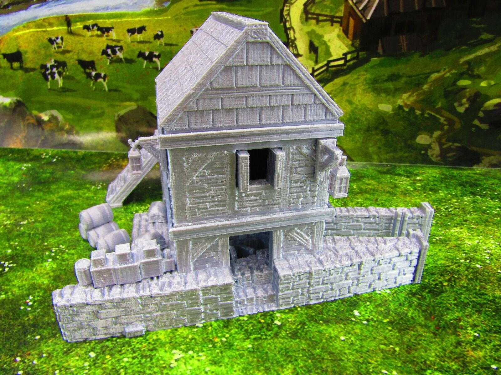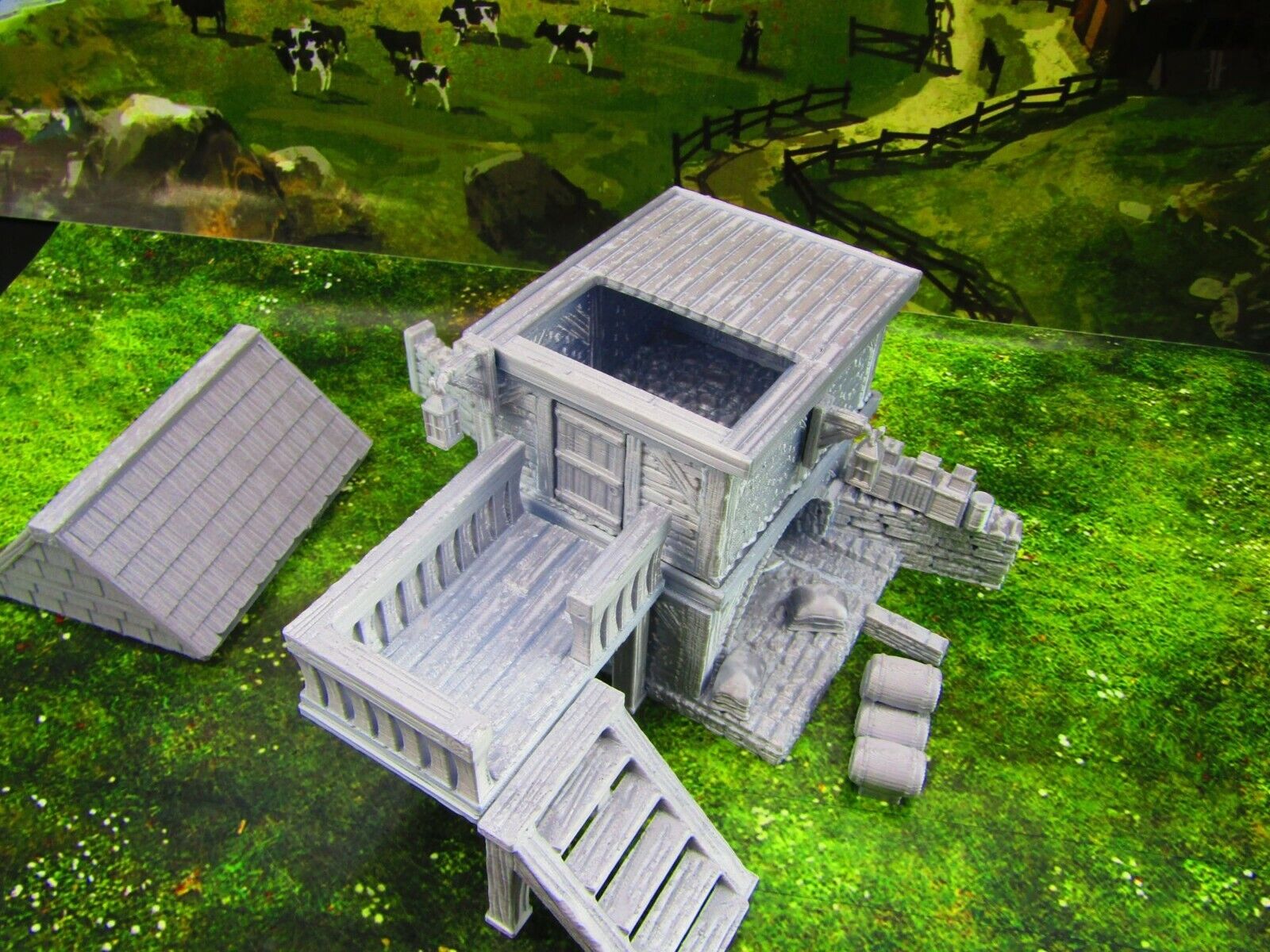 2 Floor Large River Grist Mill Grainery Scatter Terrain Scenery 3D Printed Model