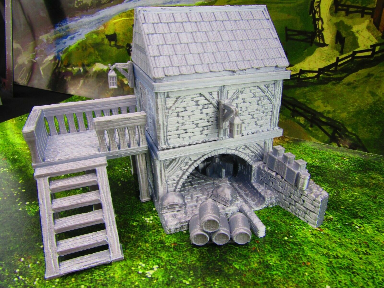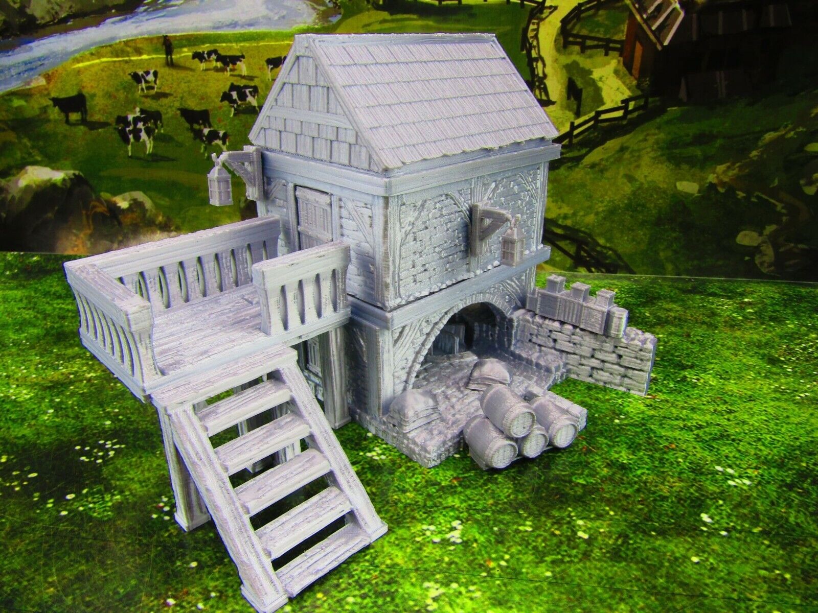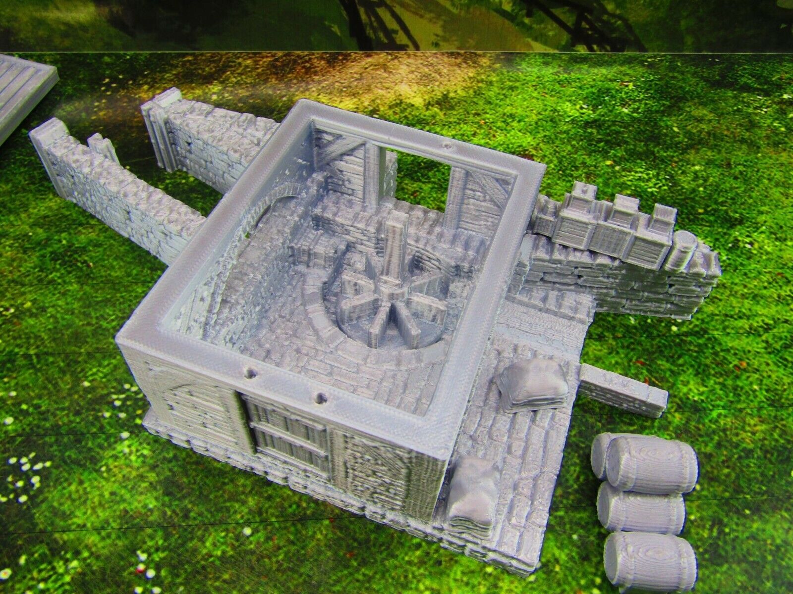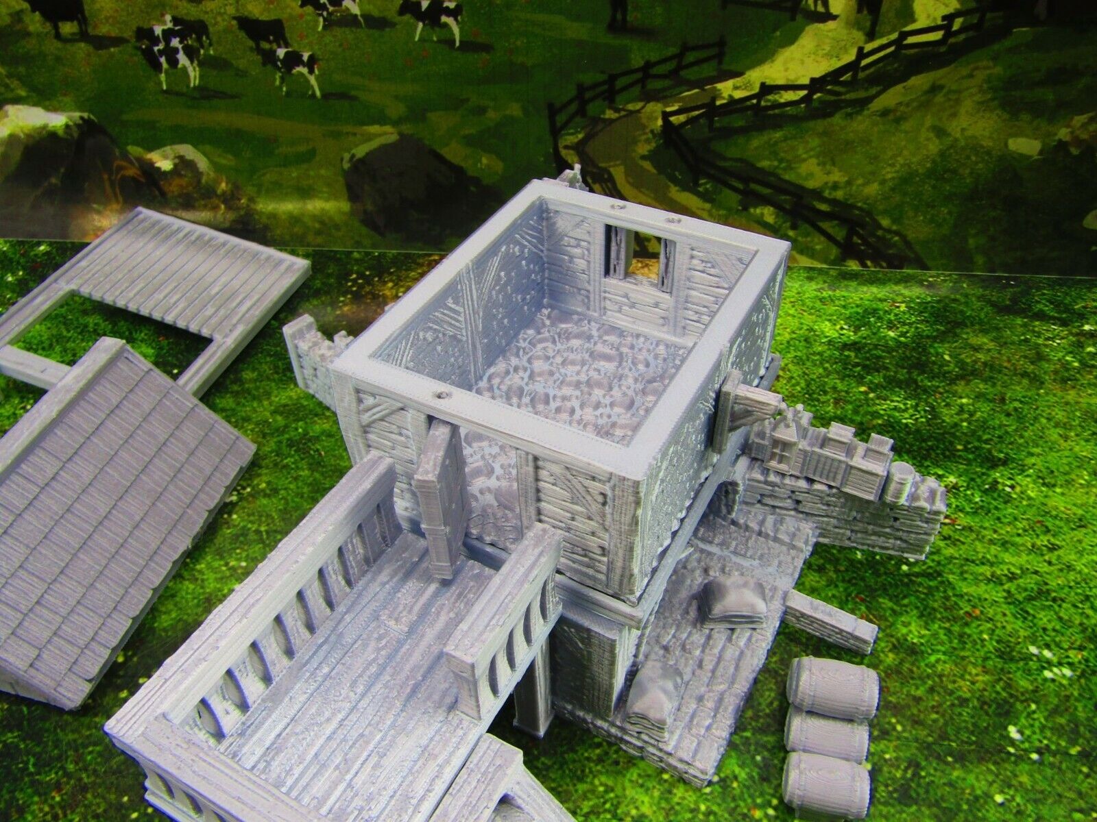 2 Floor Large River Grist Mill Grainery Scatter Terrain Scenery 3D Printed Model