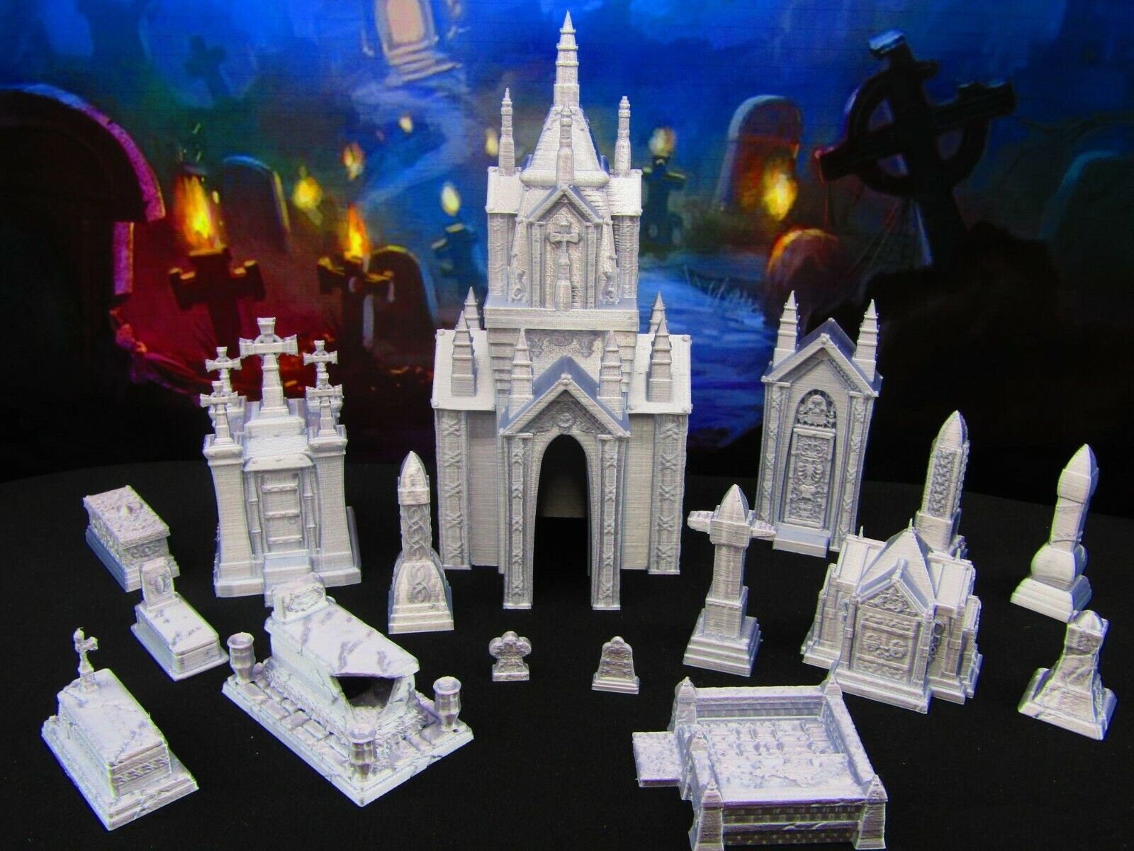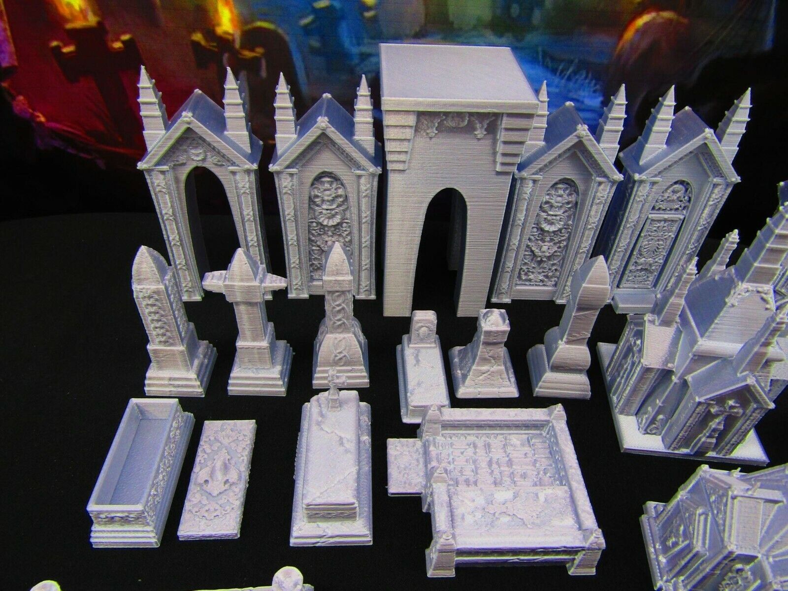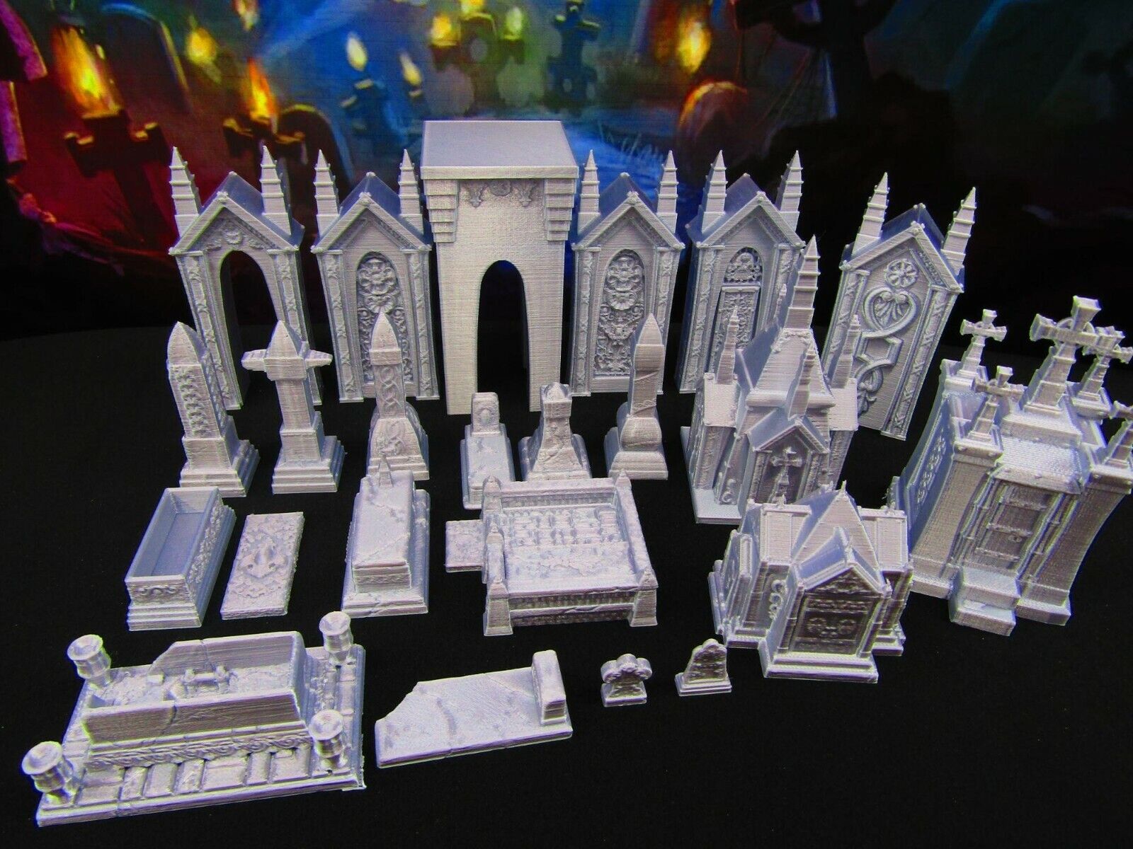 23pc Tombs, Gravestones, & Mausoleums Graveyard Collection Grave Set 3D Print