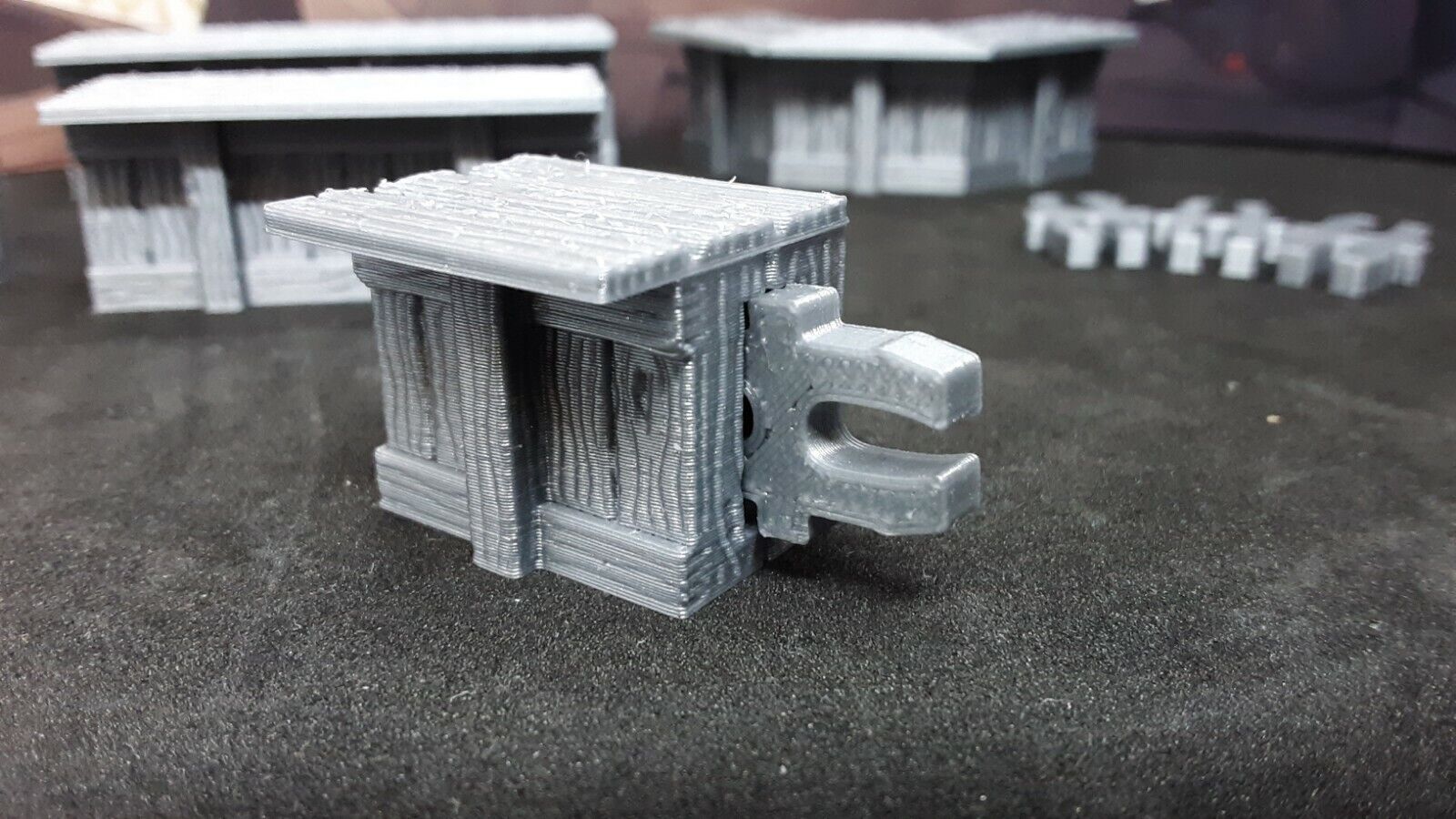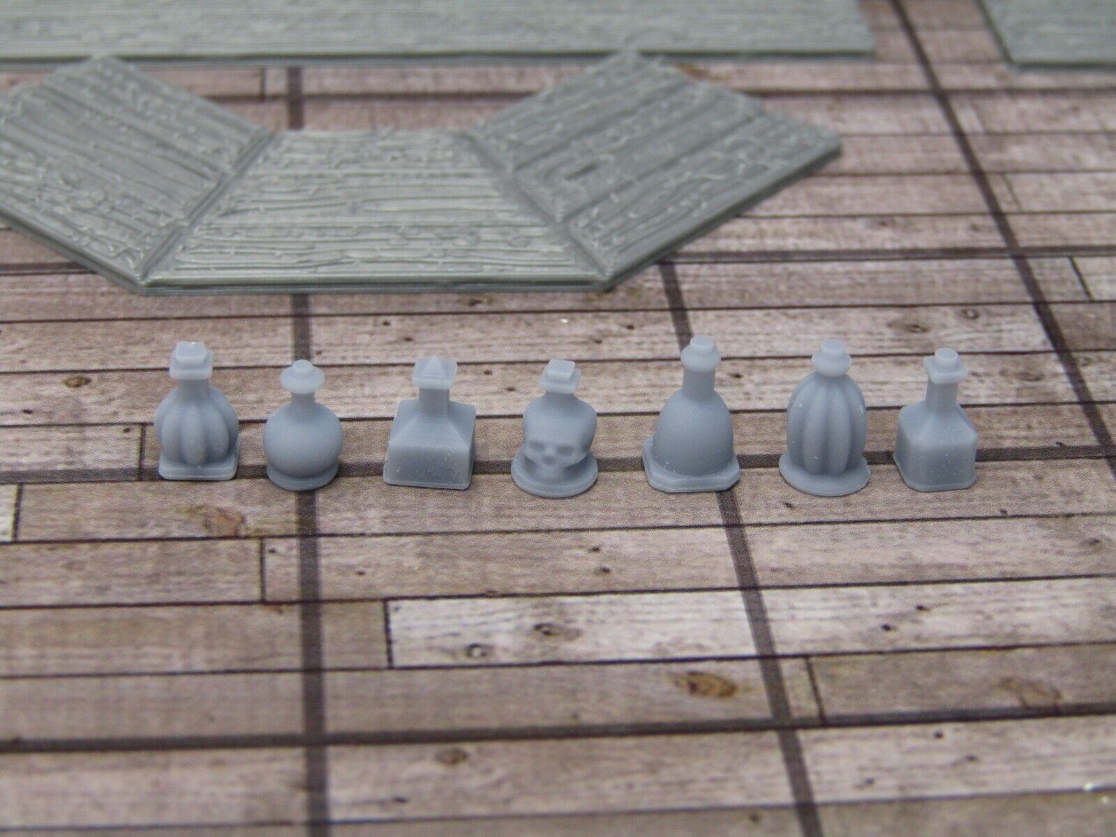 This unpainted 3D printed model set comes in paintable, silver PLA plastic. and gray resin There are several different arrangement possibilities limited by only your imagination.