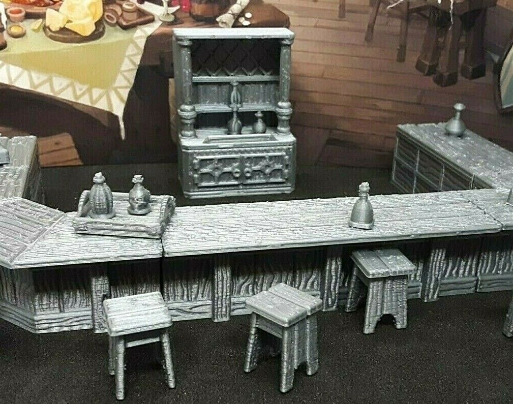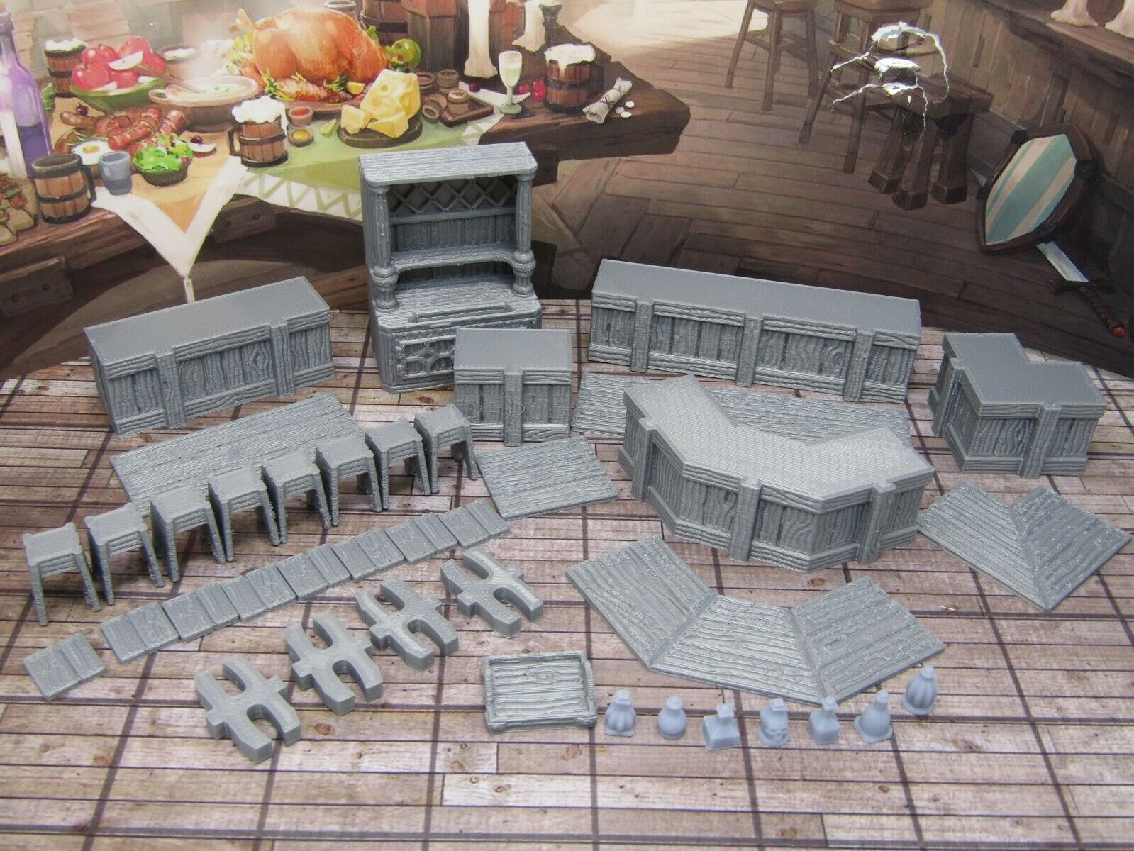 26 Piece OpenLock Modular Tavern Bar Set Dungeons & Dragons 28mm Scatter Terrain