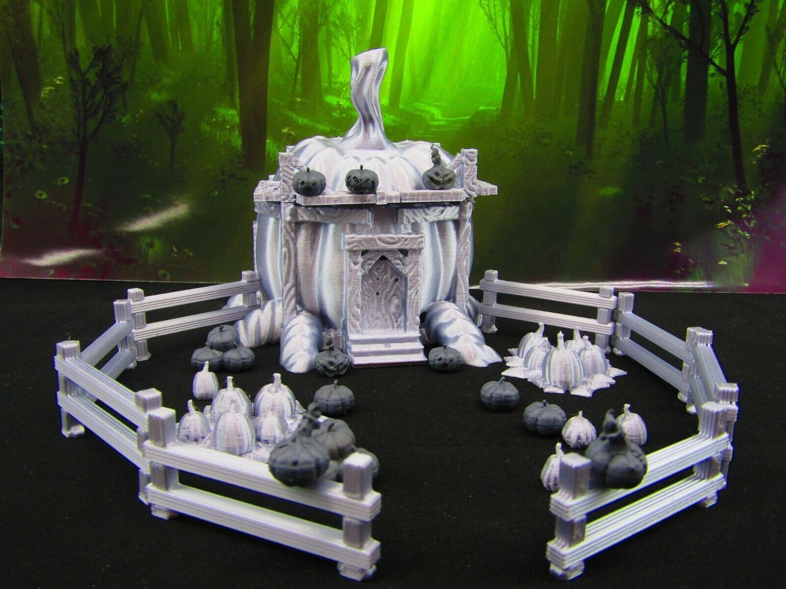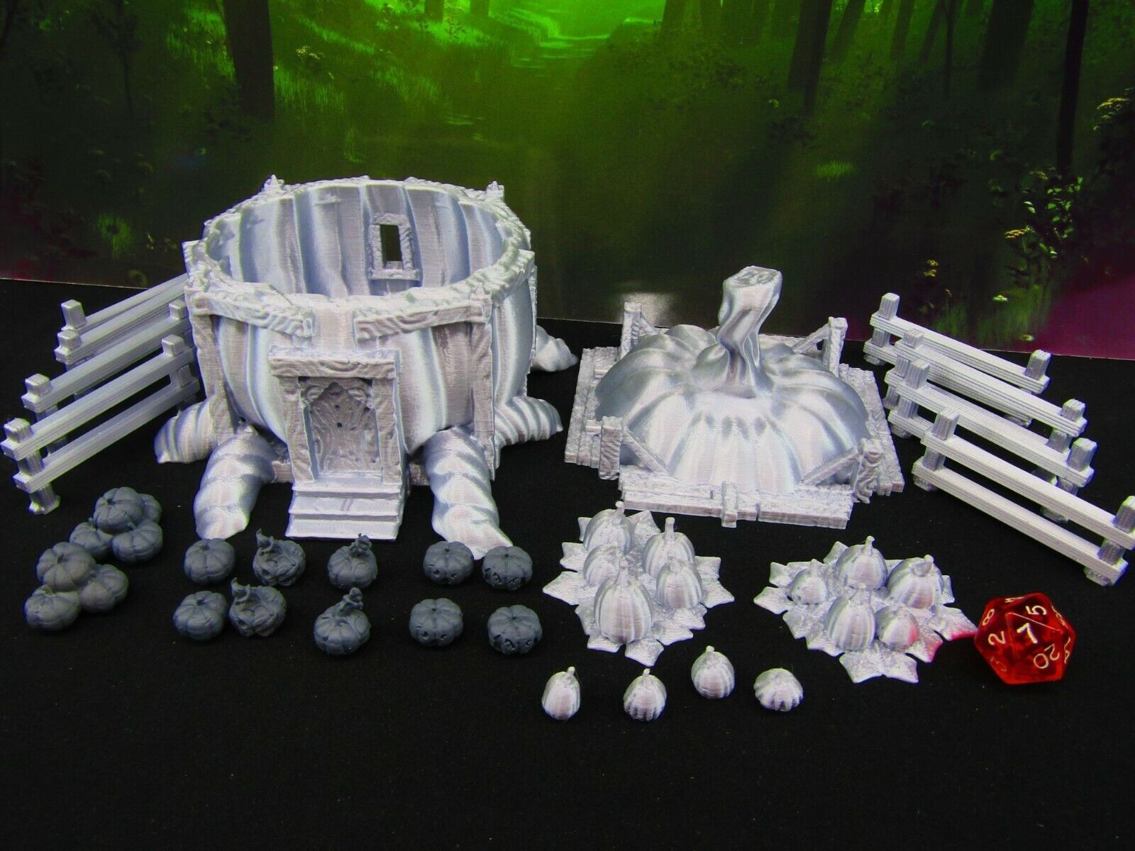 28pc Jack-O-Lantern Pumpkin Farm w/ Hut House Set Scatter Terrain Scenery