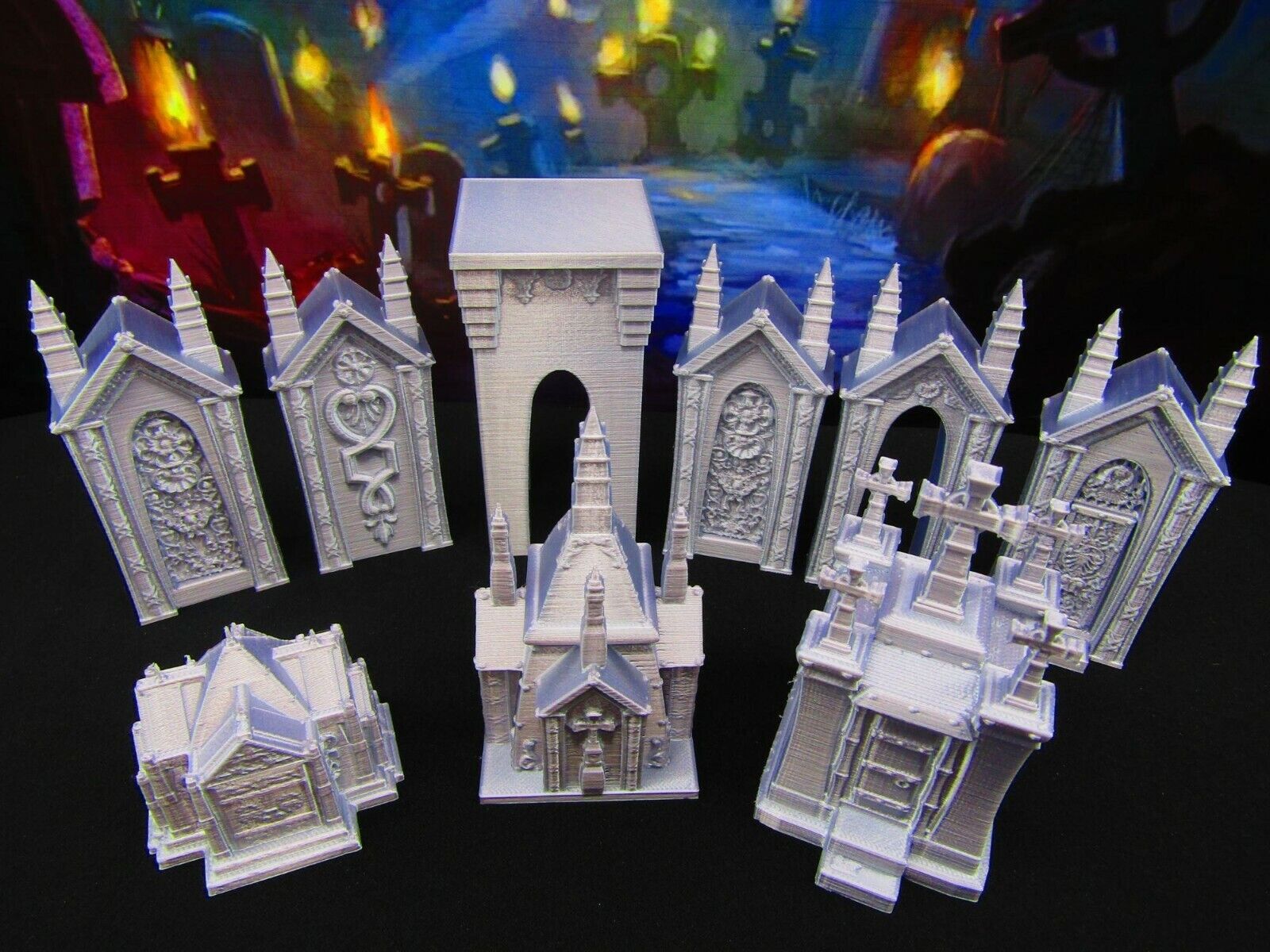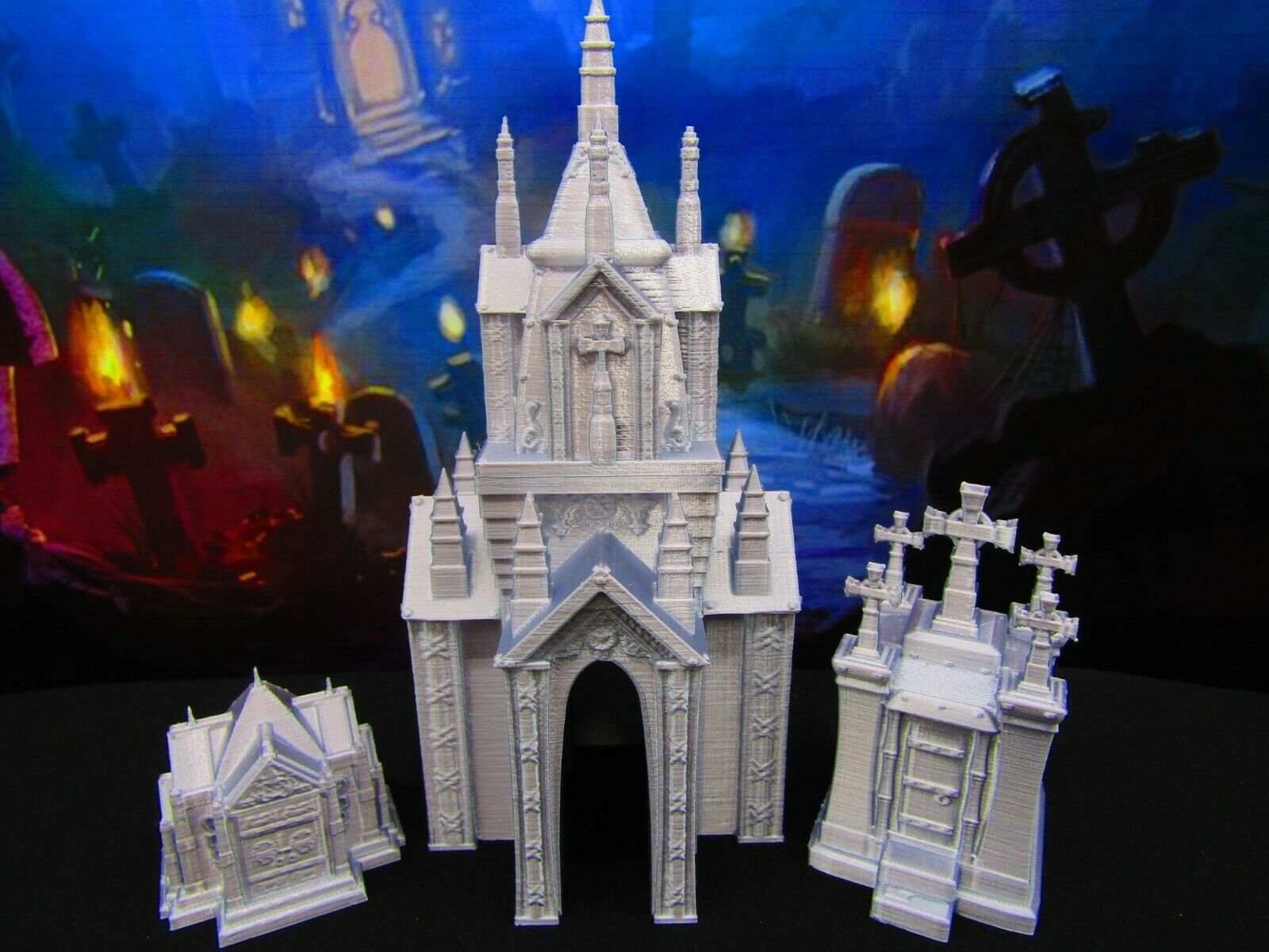 3 Mausoleum Tomb 9pc Grave Set for Graveyard / Cemetery Scatter Terrain Scenery