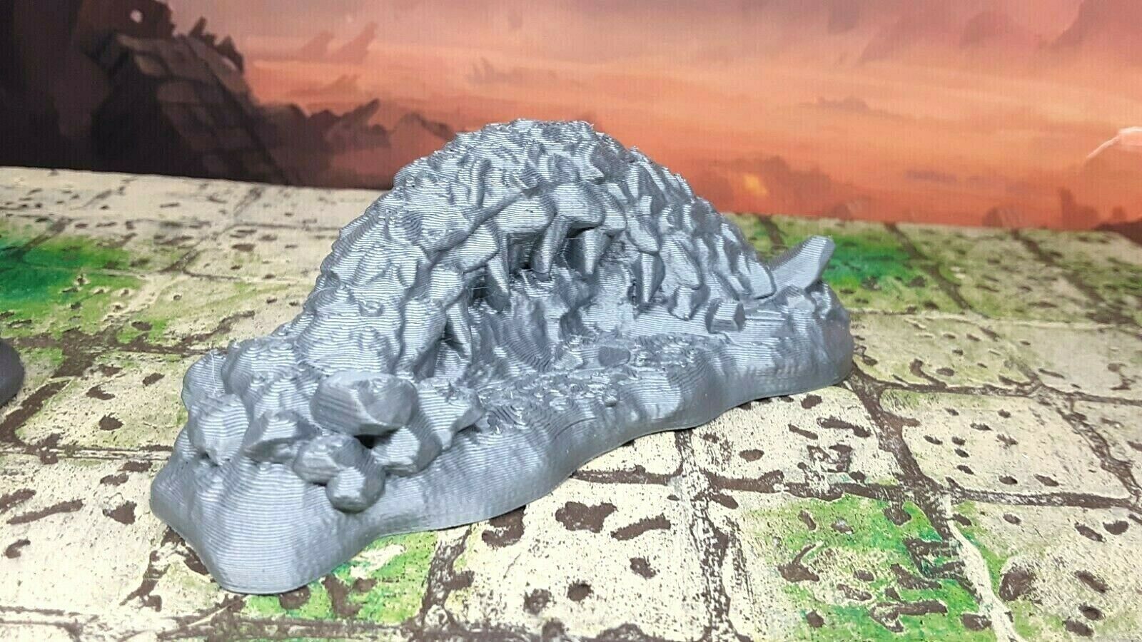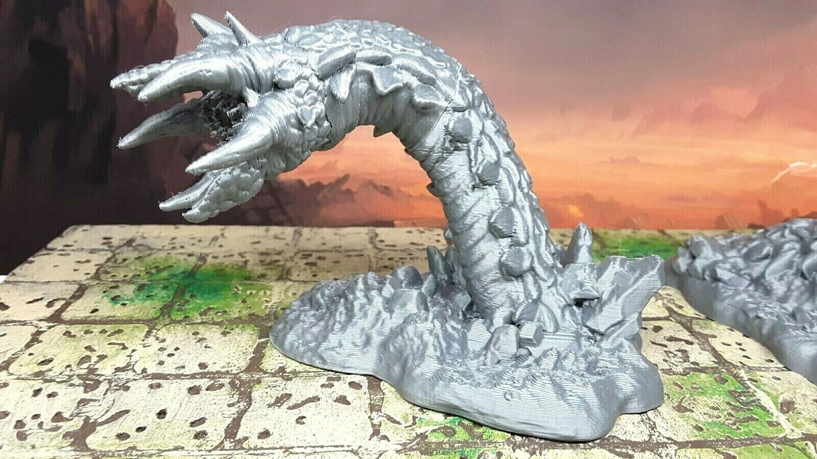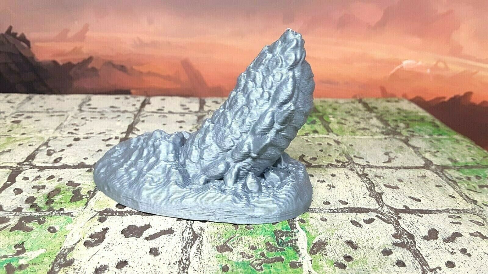 This unpainted 3D printed set comes in easy to paint silver plastic. The head section measures approximately 3" tall at it's highest point. It is placed on a 1" x 1" grid surface and beside a D20 die (Not included in sale) in the photo for size reference. It's scaled to work with all 28mm/32mm scale or similar miniatures from many popular RPG dice games such as Dungeons and Dragons, Pathfinder, Warhammer, and many others.