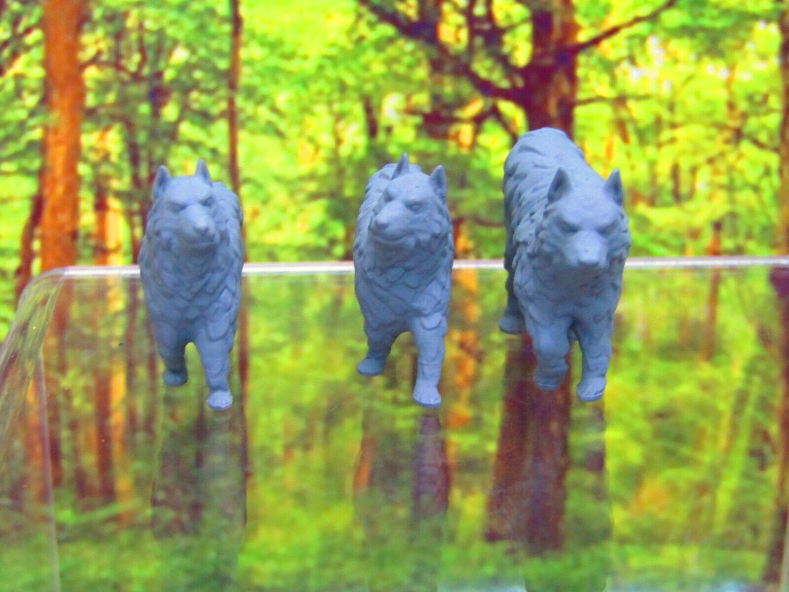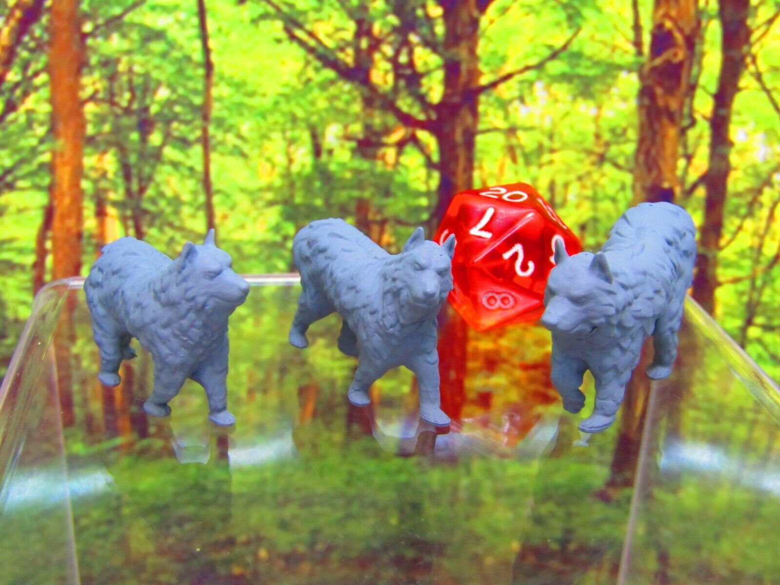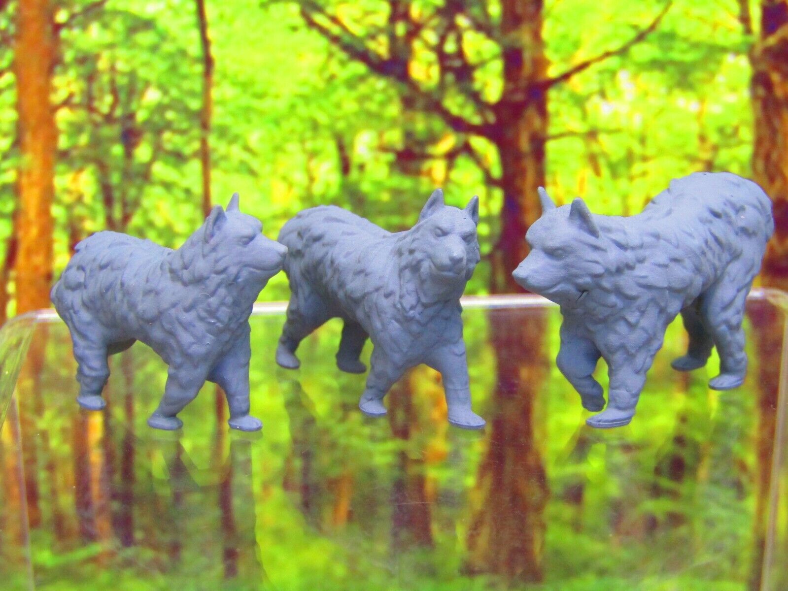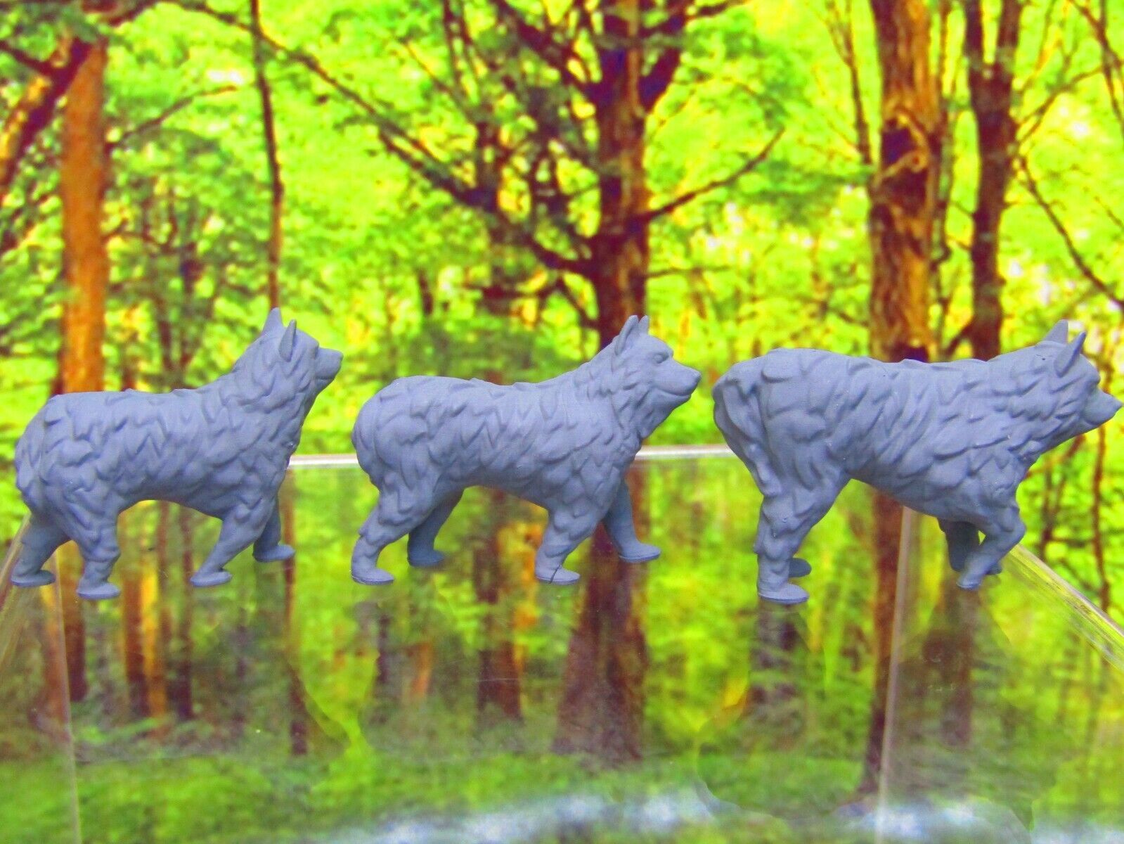 3 Piece Wild Dogs / Wolf Pack Set Mini Miniature 3D Printed Figure Model 28/32mm