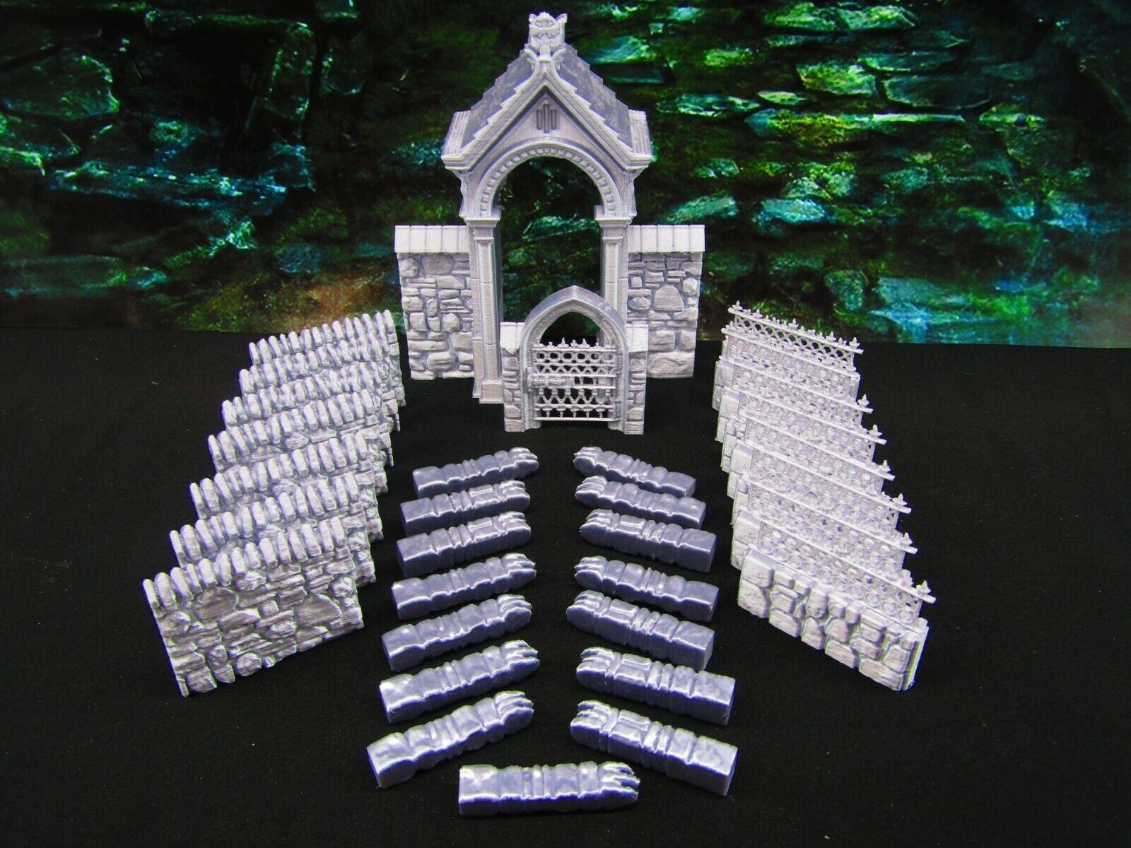 32pc Fence Set Graveyard / Cemetery Scatter Terrain Scenery Tabletop Gaming