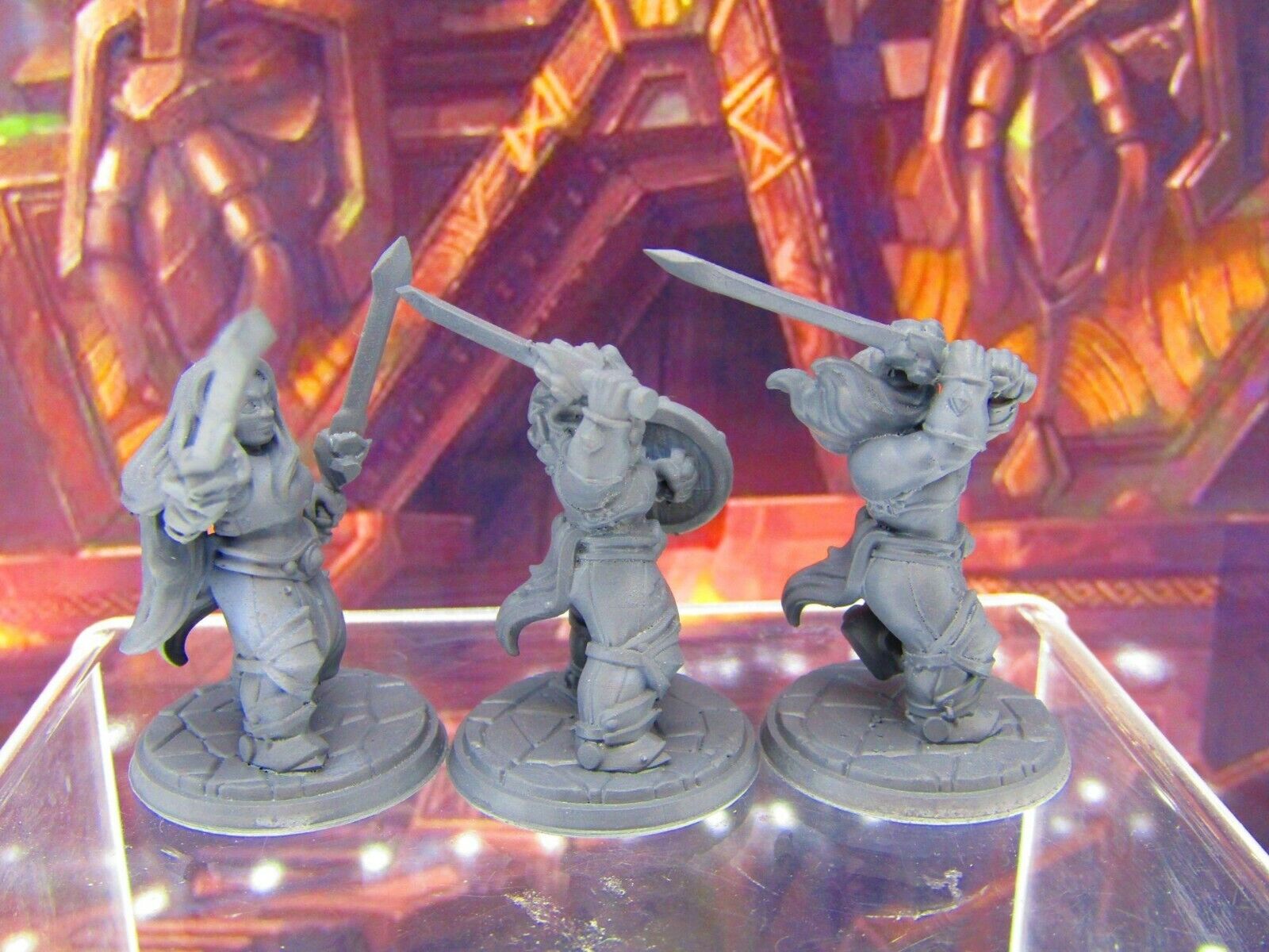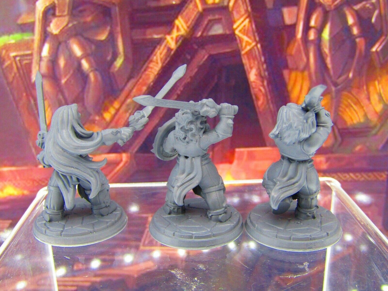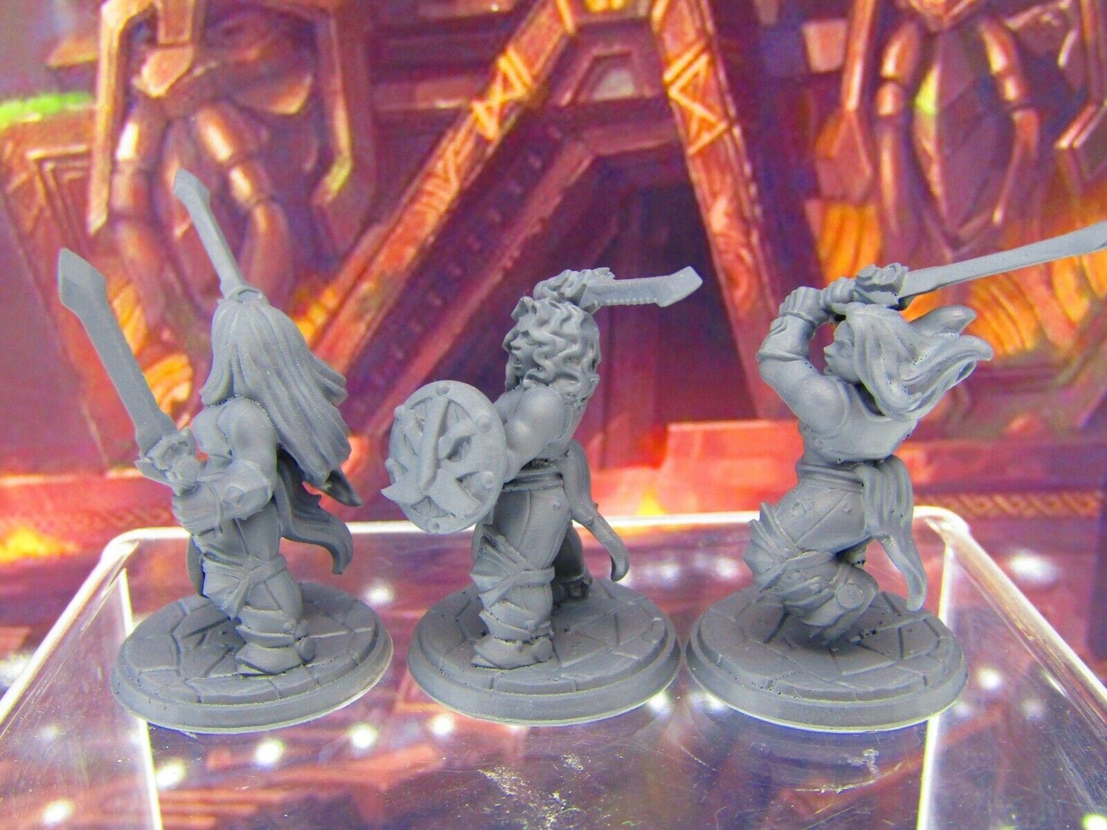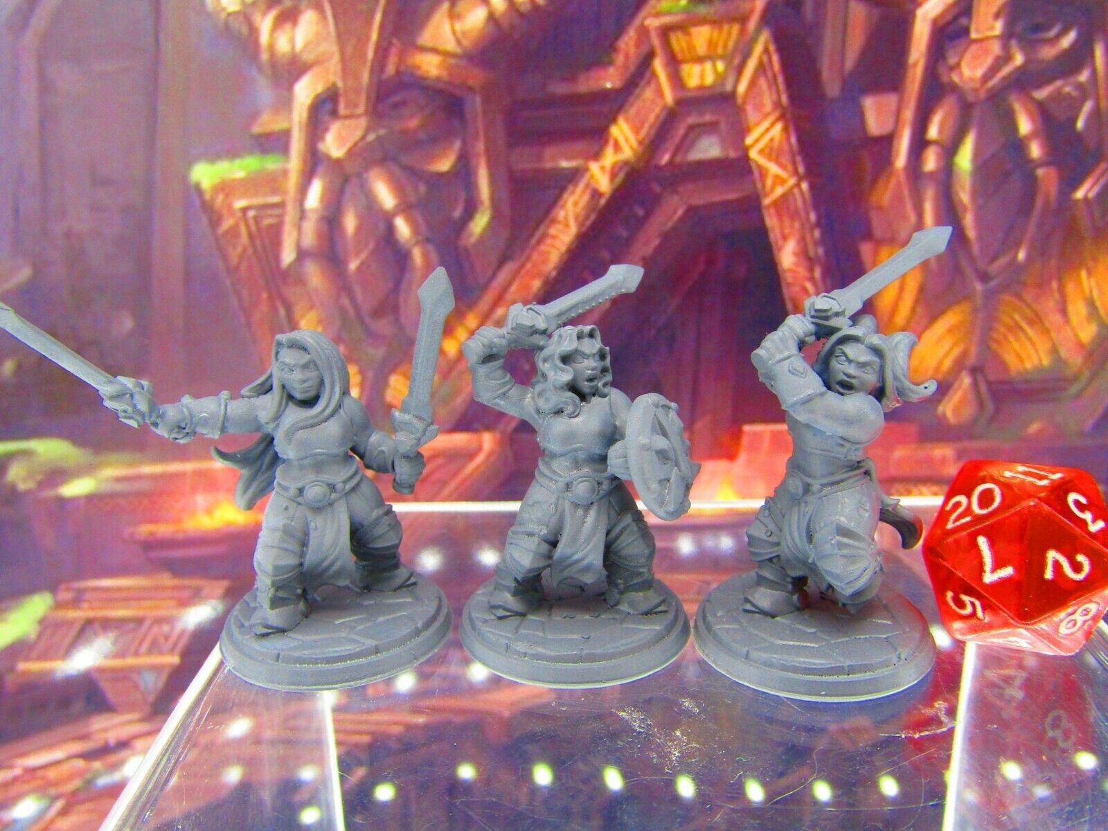 3pc Dwarf Female Fighters Soldiers Mini Miniature Figure 3D Printed Model DnD