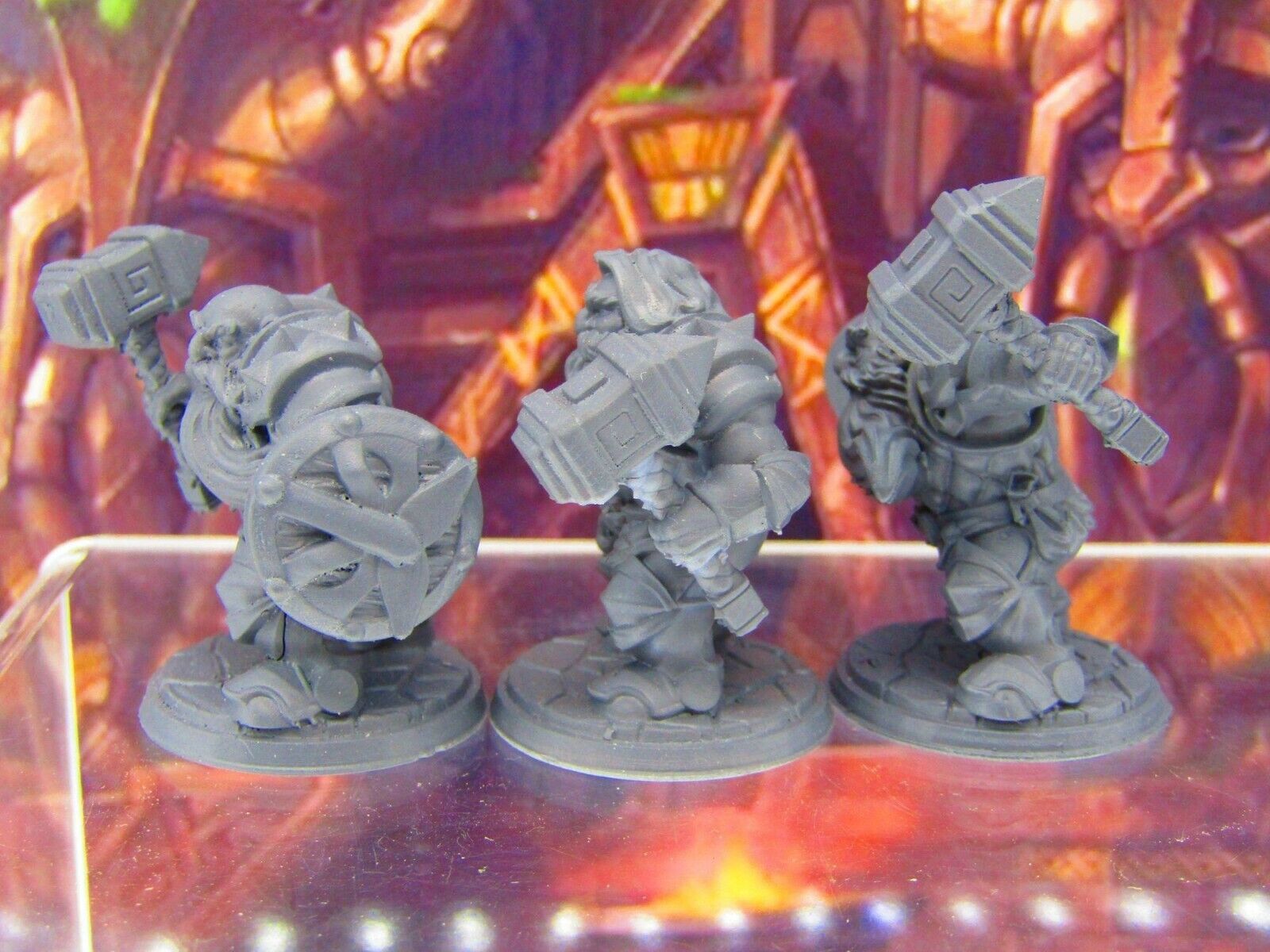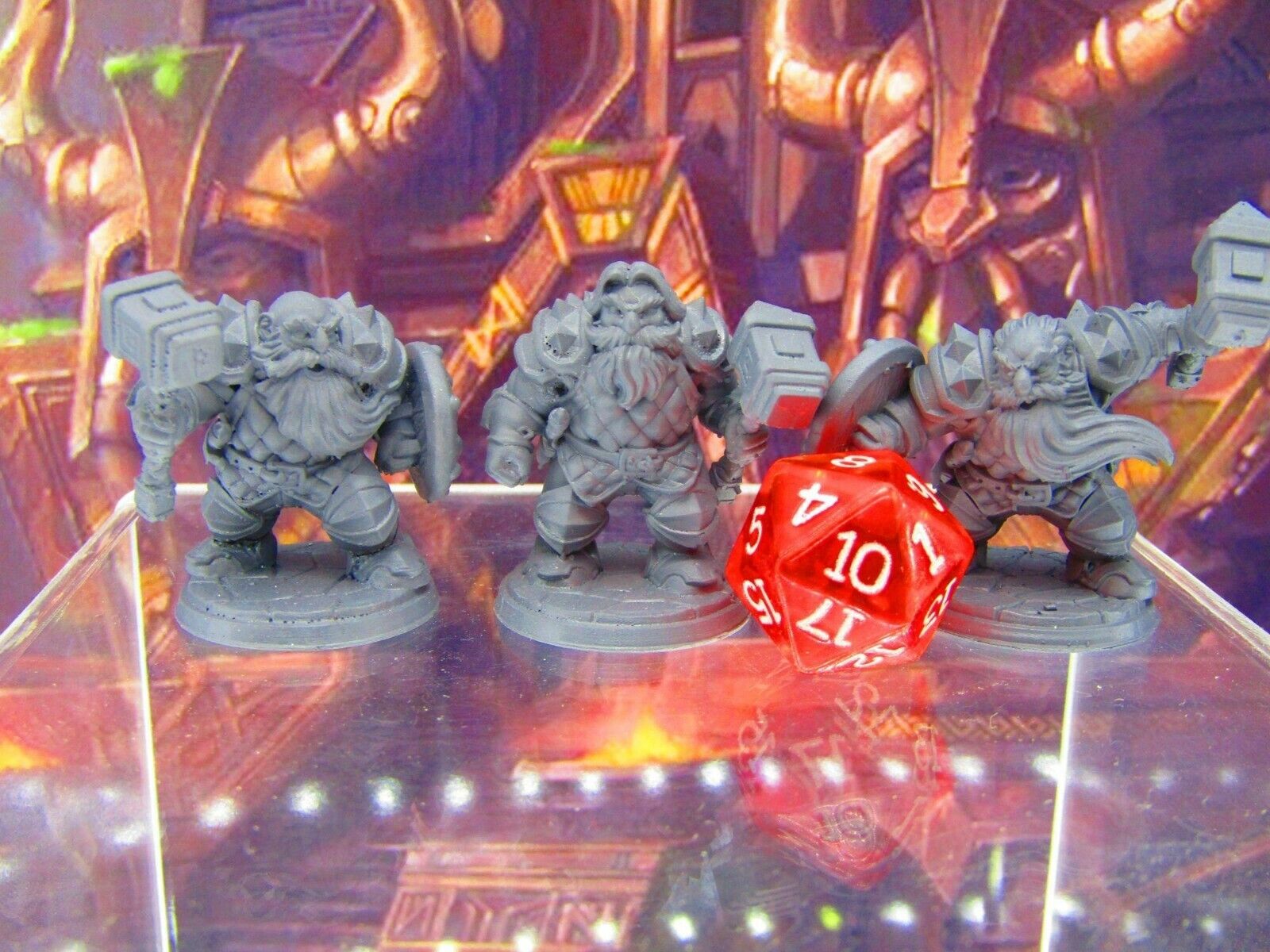 3pc Dwarf Fighter Soldiers w/ Hammers Mini Miniature Figure 3D Printed Model DnD