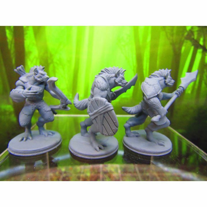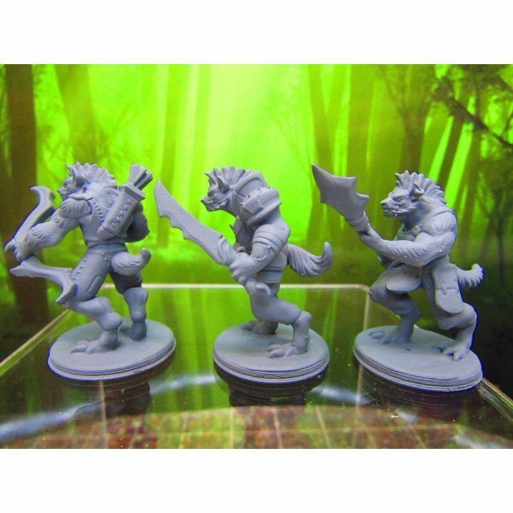 3pc Gnolls Set with Sword, Spear, Bow Mini Miniature 3D Printed Model 28/32mm