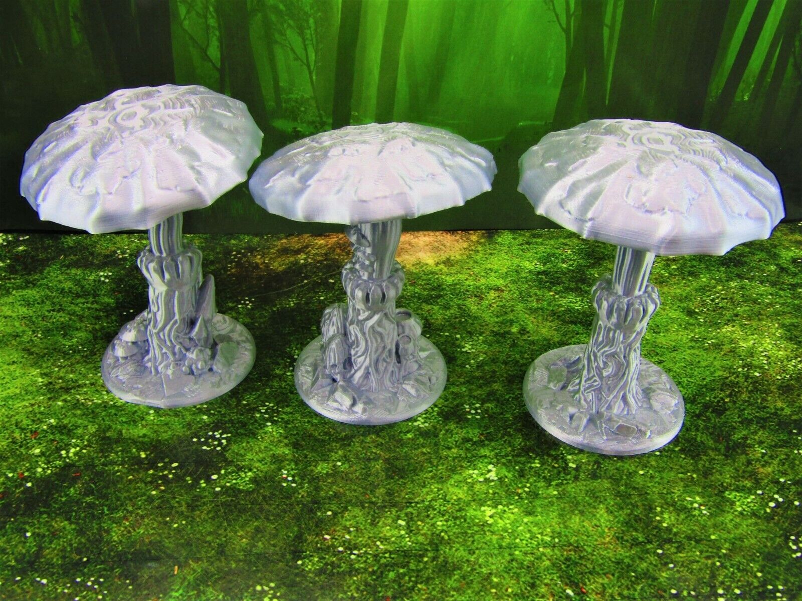 3pc Large Mushroom Trees Forest Set Scatter Terrain Scenery Mini Miniature Model