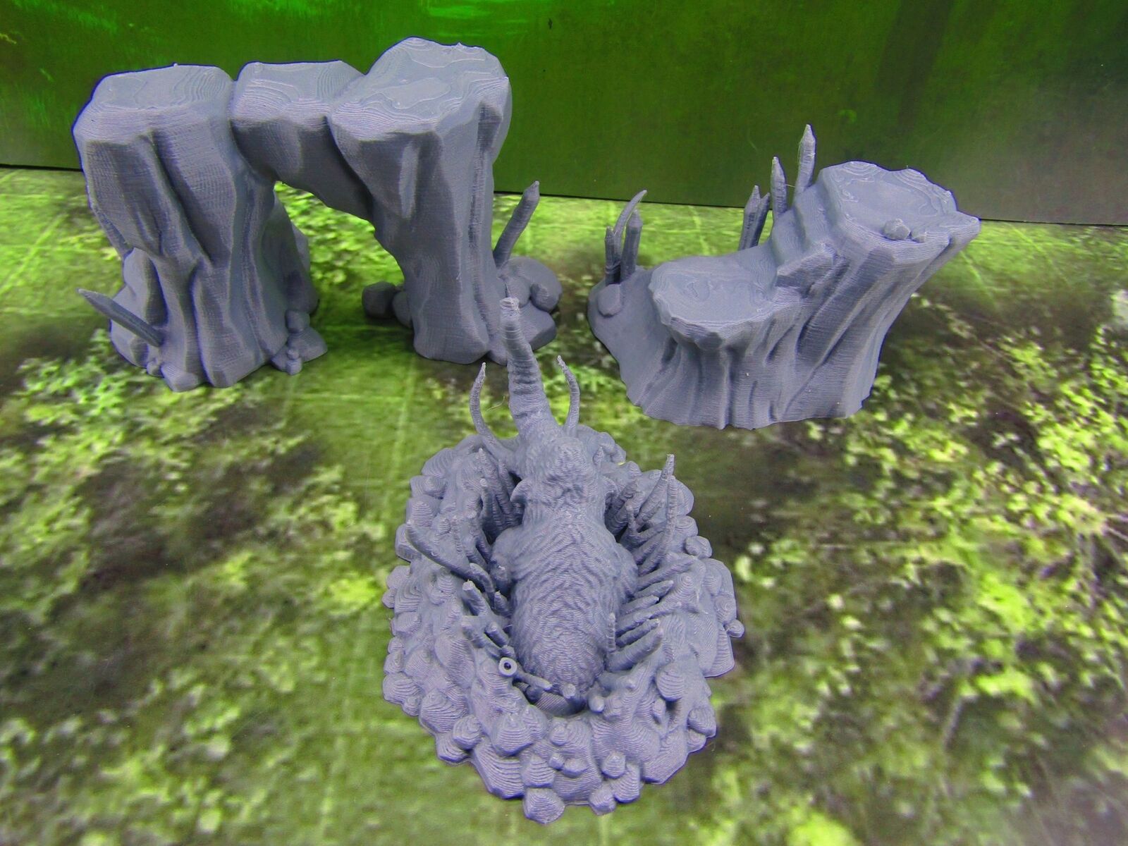 3pc Mammoth Ambush Prehistoric Caveman Tribal Trap Set Scatter Terrain Scenery