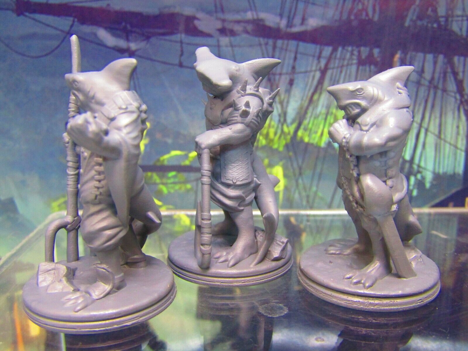 3pc Sharkman Pirate Wartribe Party Mini Miniature Figure 3D Printed Model 28/32m