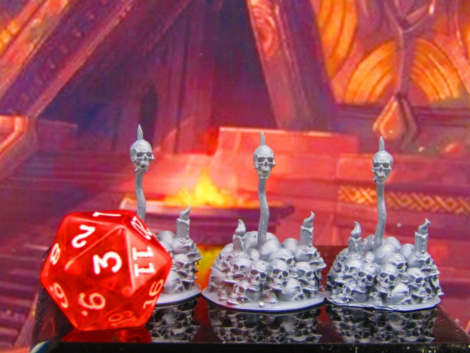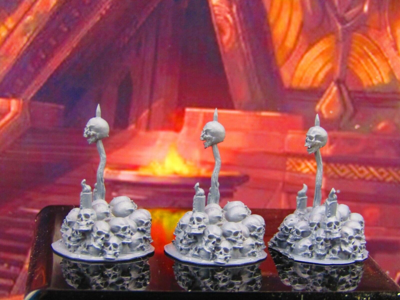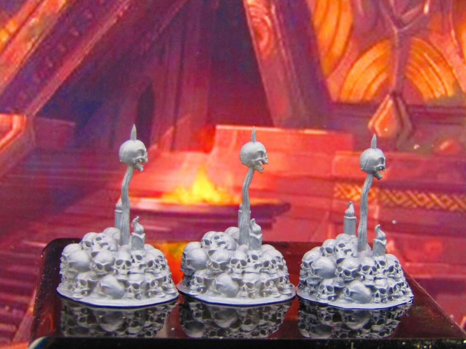 3pc Skull Pile w/ Pike & Candles Scatter Terrain Scenery Mini Miniature Model