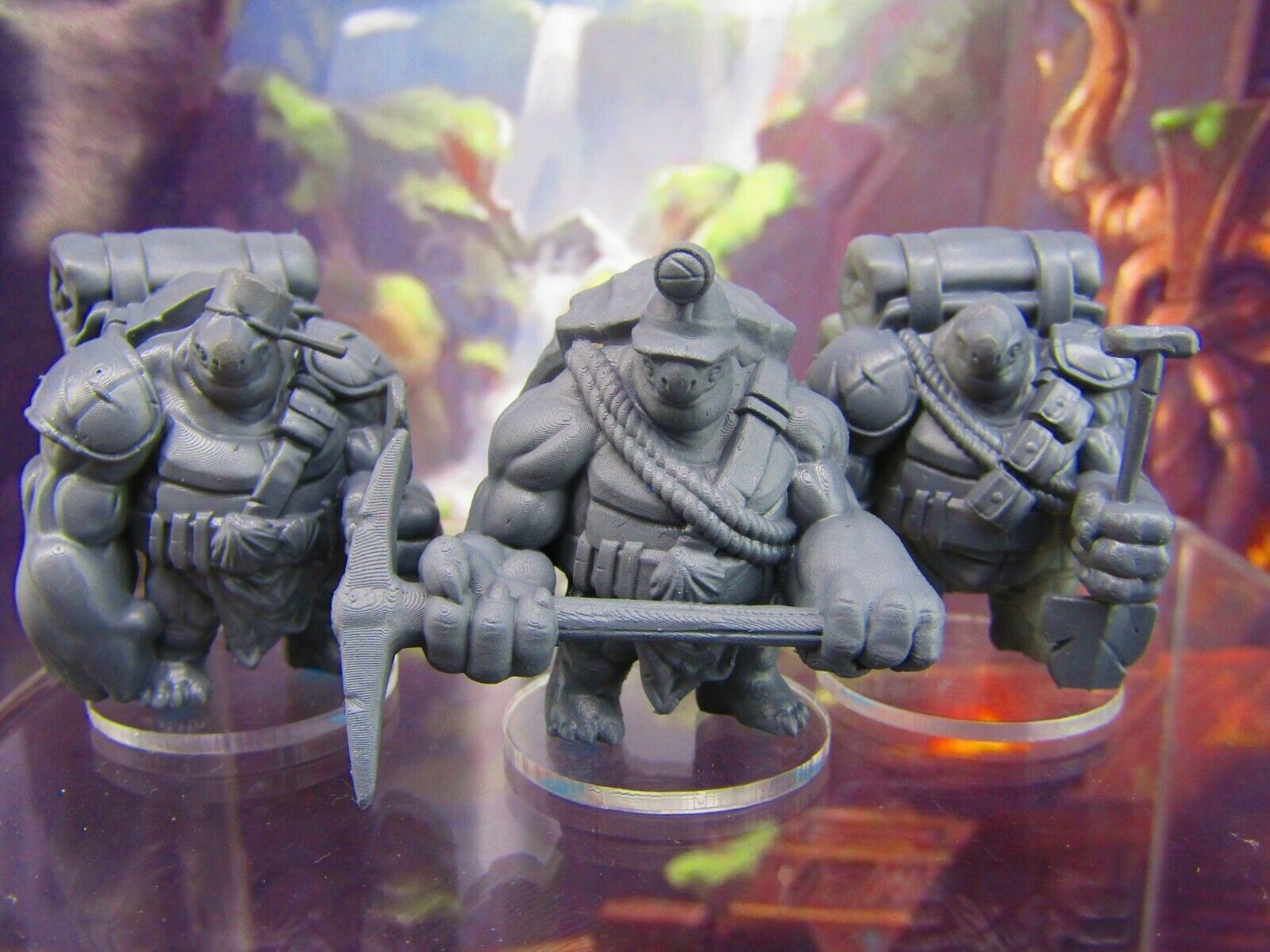 3pc Tortle Miner Set Turtle Man Race Mini Miniature Figure 3D Printed Model