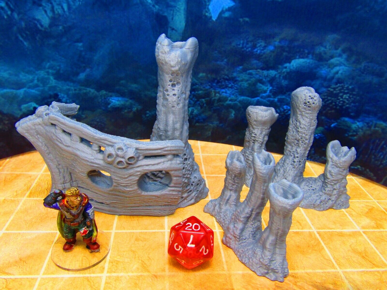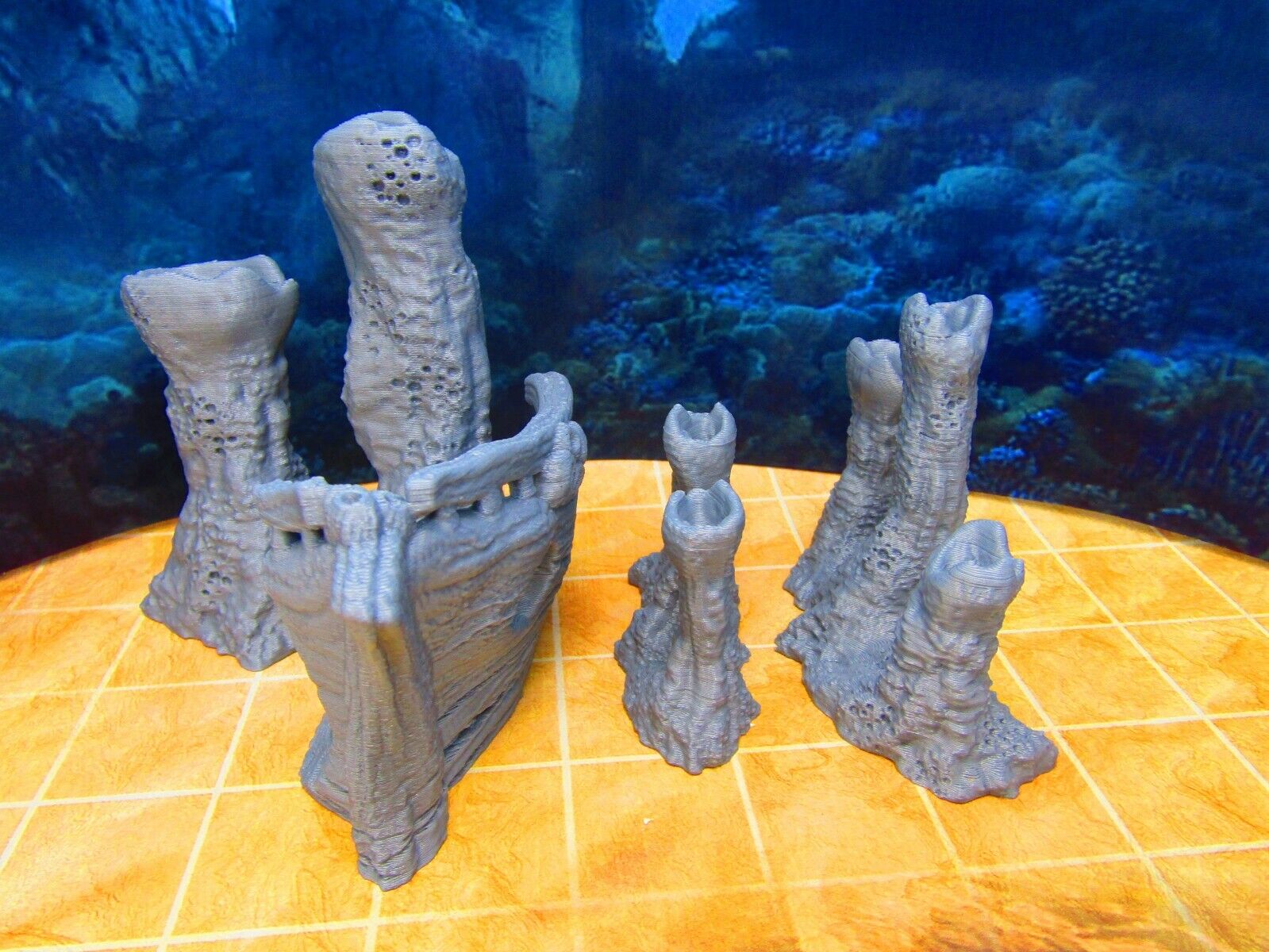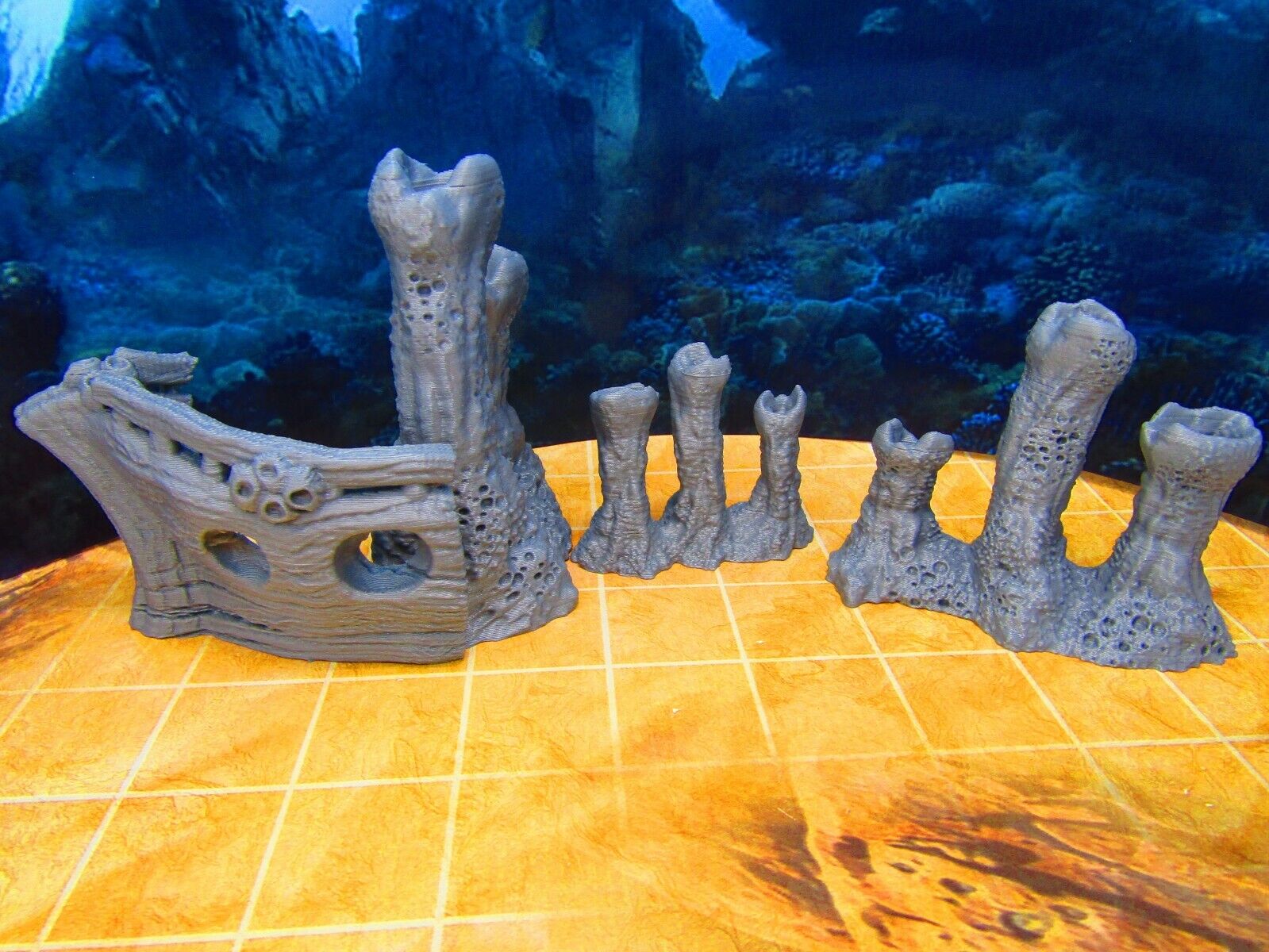3pc Underwater Steam Vents + Shipwreck Scatter Terrain Scenery 3D Printed Model
