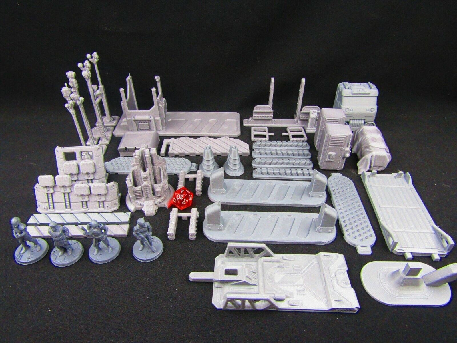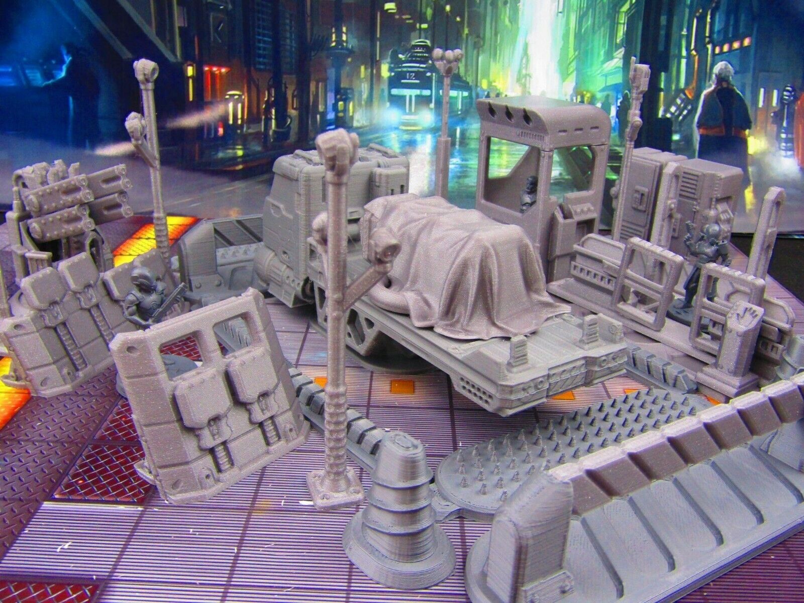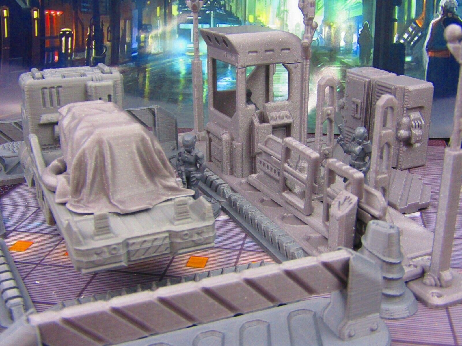 40pc Security Military Checkpoint Gate w/ Truck, Cargo & Minis Scenery SciFi