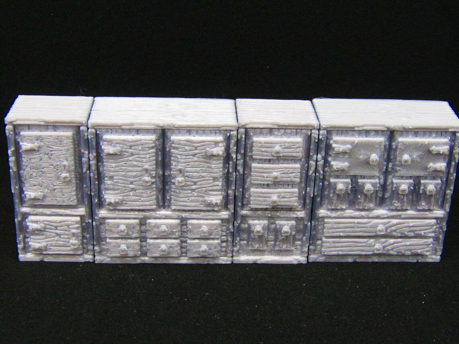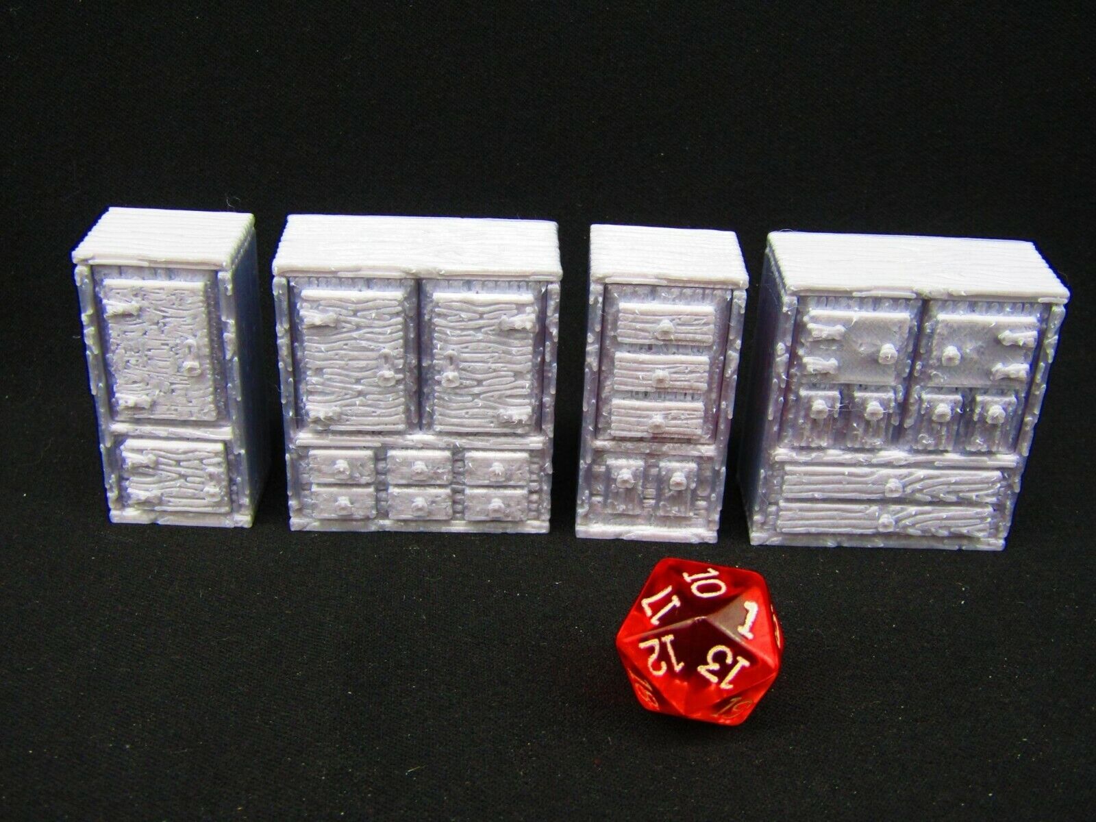 4pc Cabinets and Drawers Set Scatter Terrain Scenery 3D Printed Mini Miniature