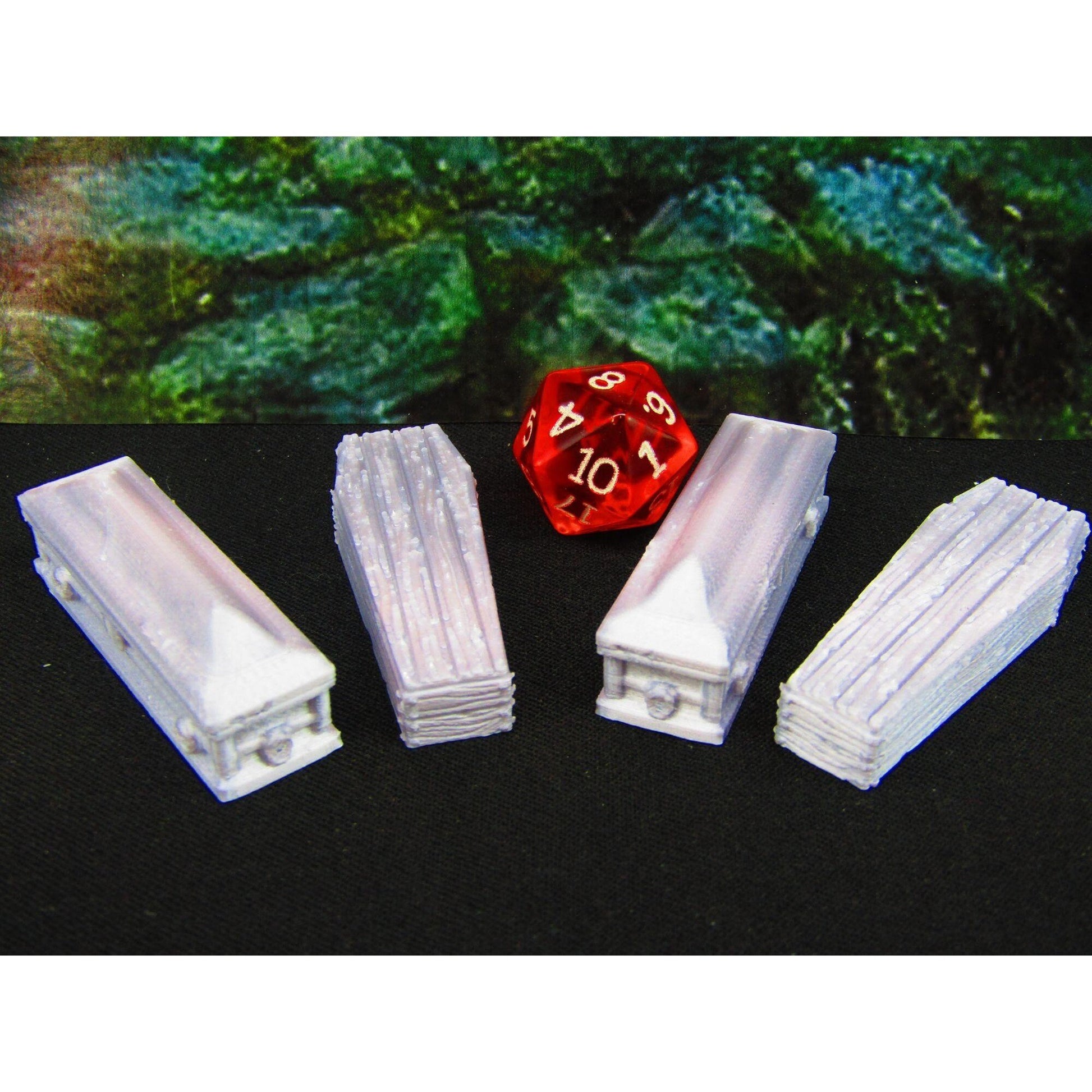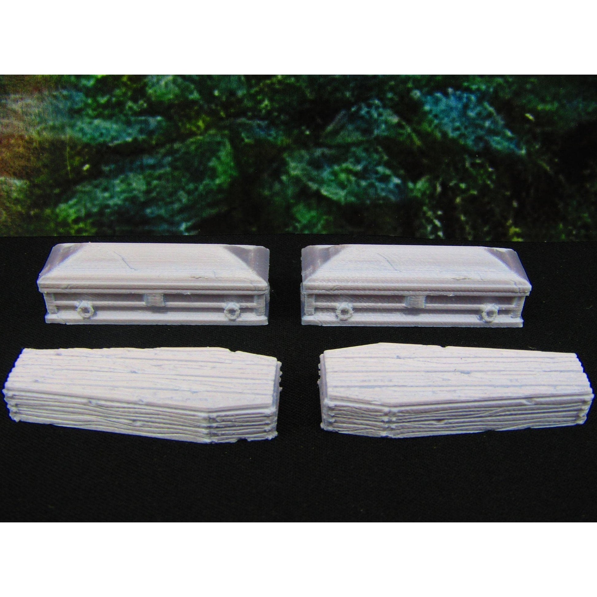 4pc Coffin and Casket Set Graveyard / Cemetery Scatter Terrain Scenery Tabletop Gaming Mini Miniature 3D Printed D&D Wargaming etc.