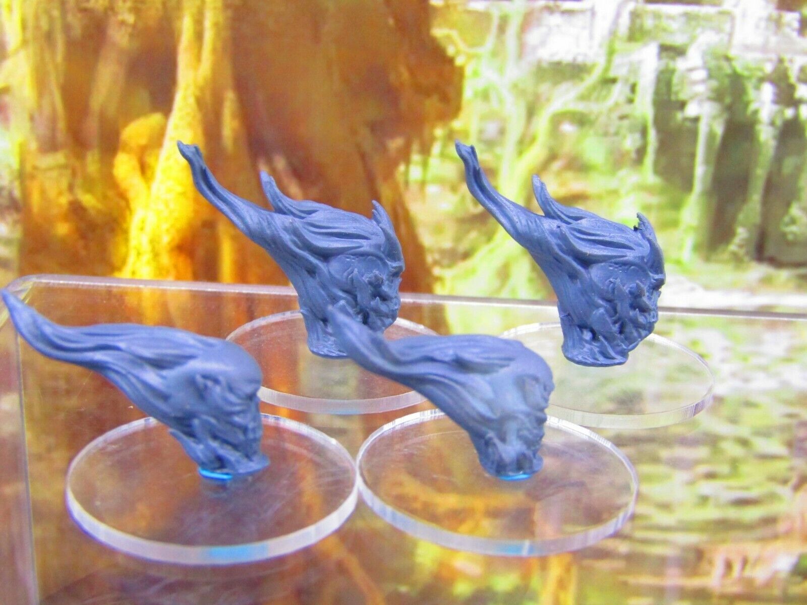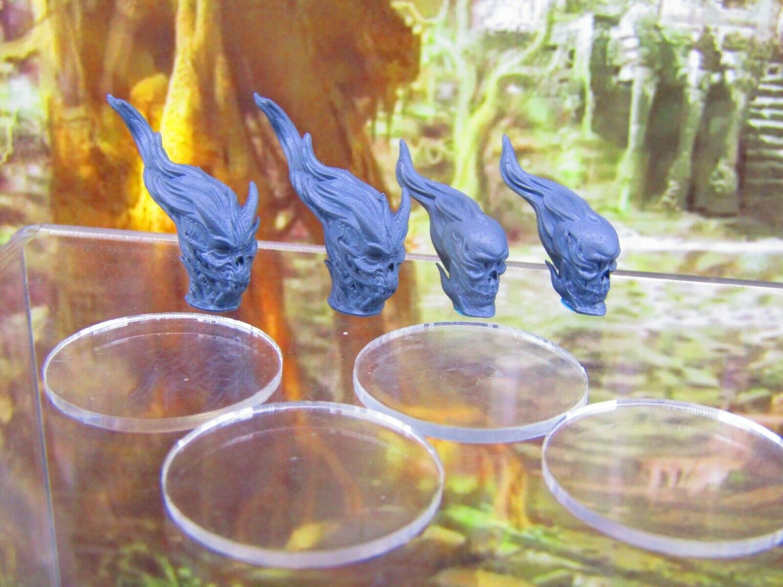 4pc Flaming Skulls Set Mini Miniatures 3D Printed Resin Model Figure 28/32mm