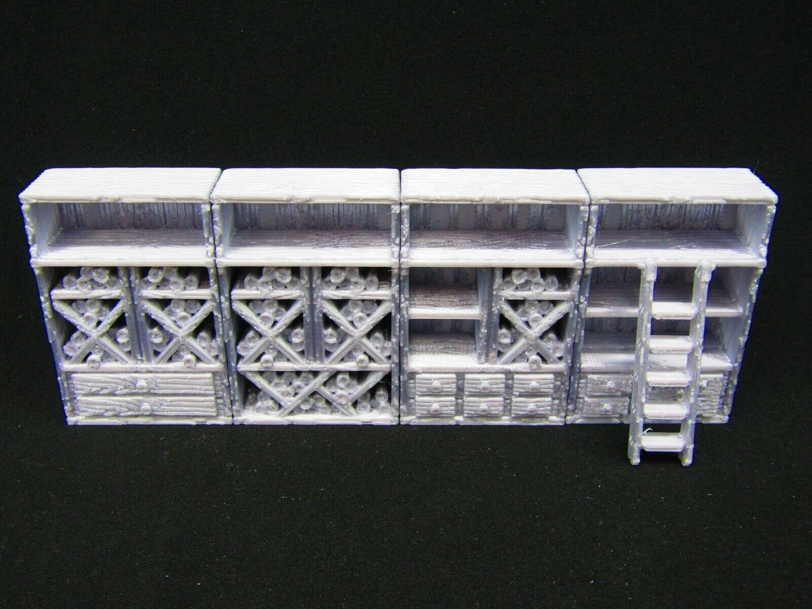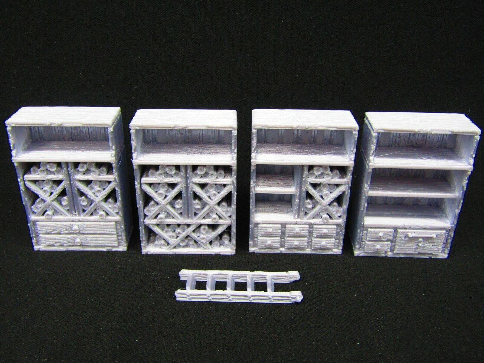 4pc Medium / Tall Shelves & 1 Ladder Scatter Terrain Scenery 3D Printed Mini