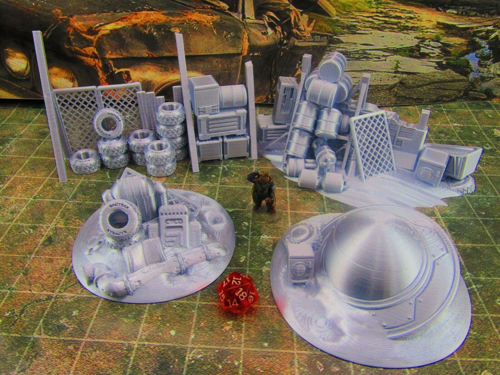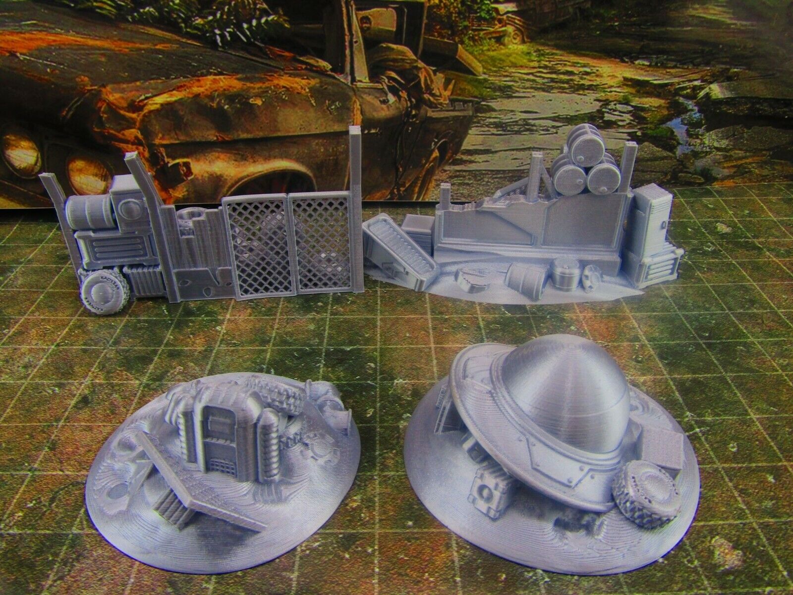 4pc Sci Fi Junkyard Scrap Pile Set Scatter Terrain Scenery Wasteland Apocalypse