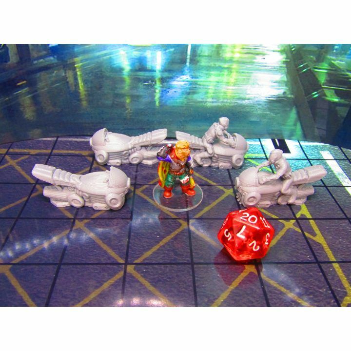 4x Hover Bikes Vehicles With & W/O Rider Terrain Scenery
