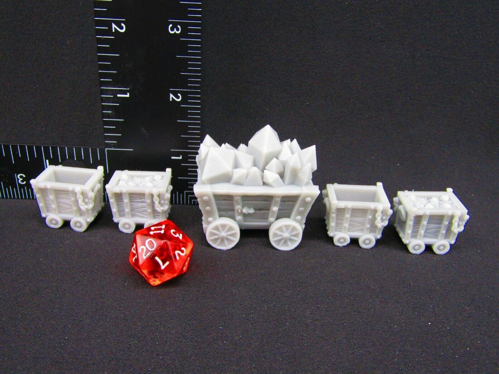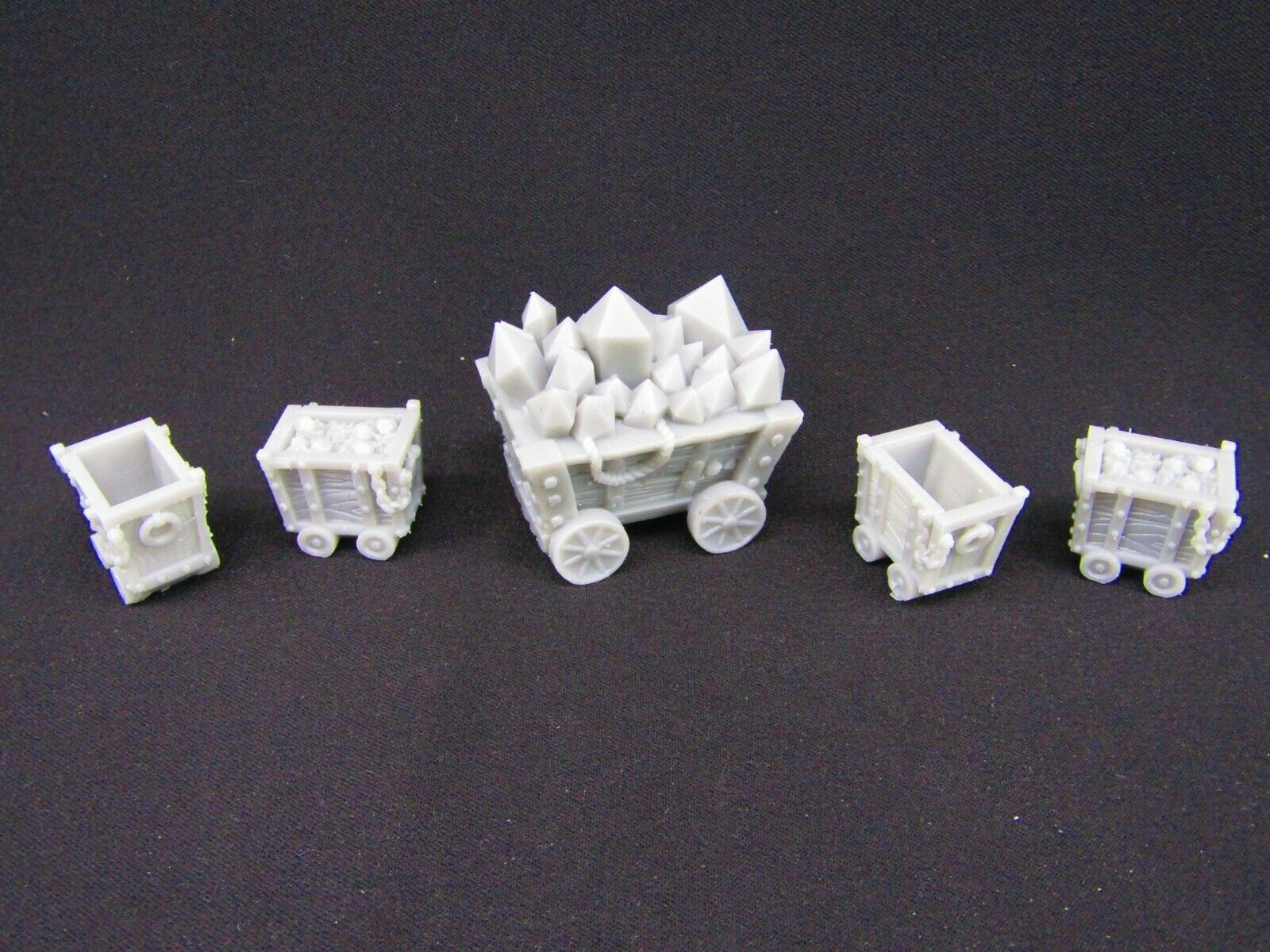 5pc Mine Carts Scatter Terrain Scenery 3D Printed Mini Miniature Model 28/32mm
