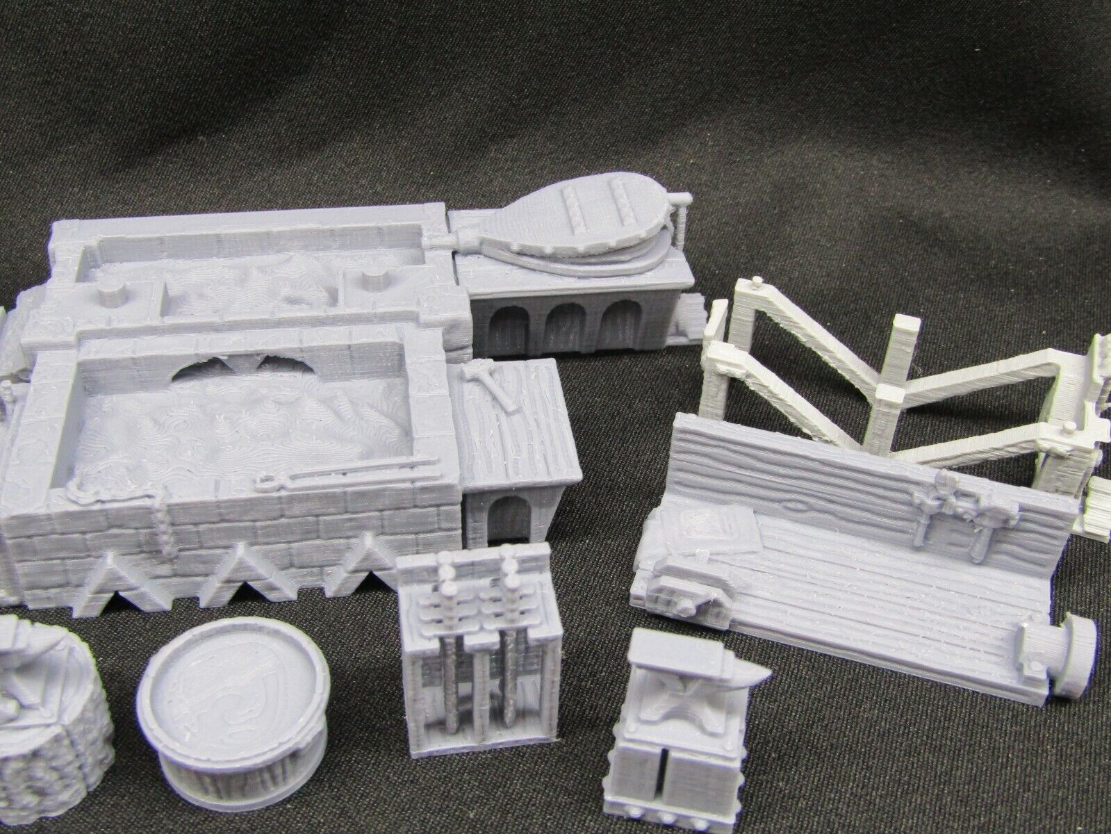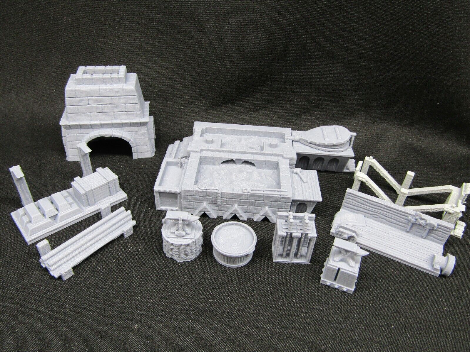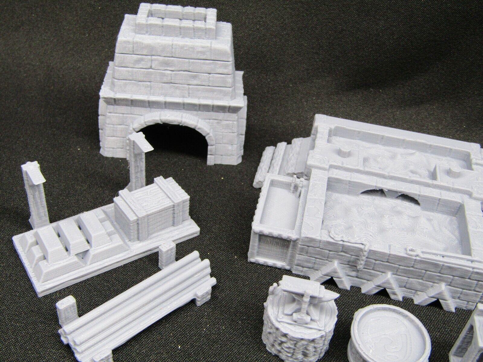 7 Piece Blacksmith's Forge and Workshop Set Miniature Scenery Terrain 3D Printed