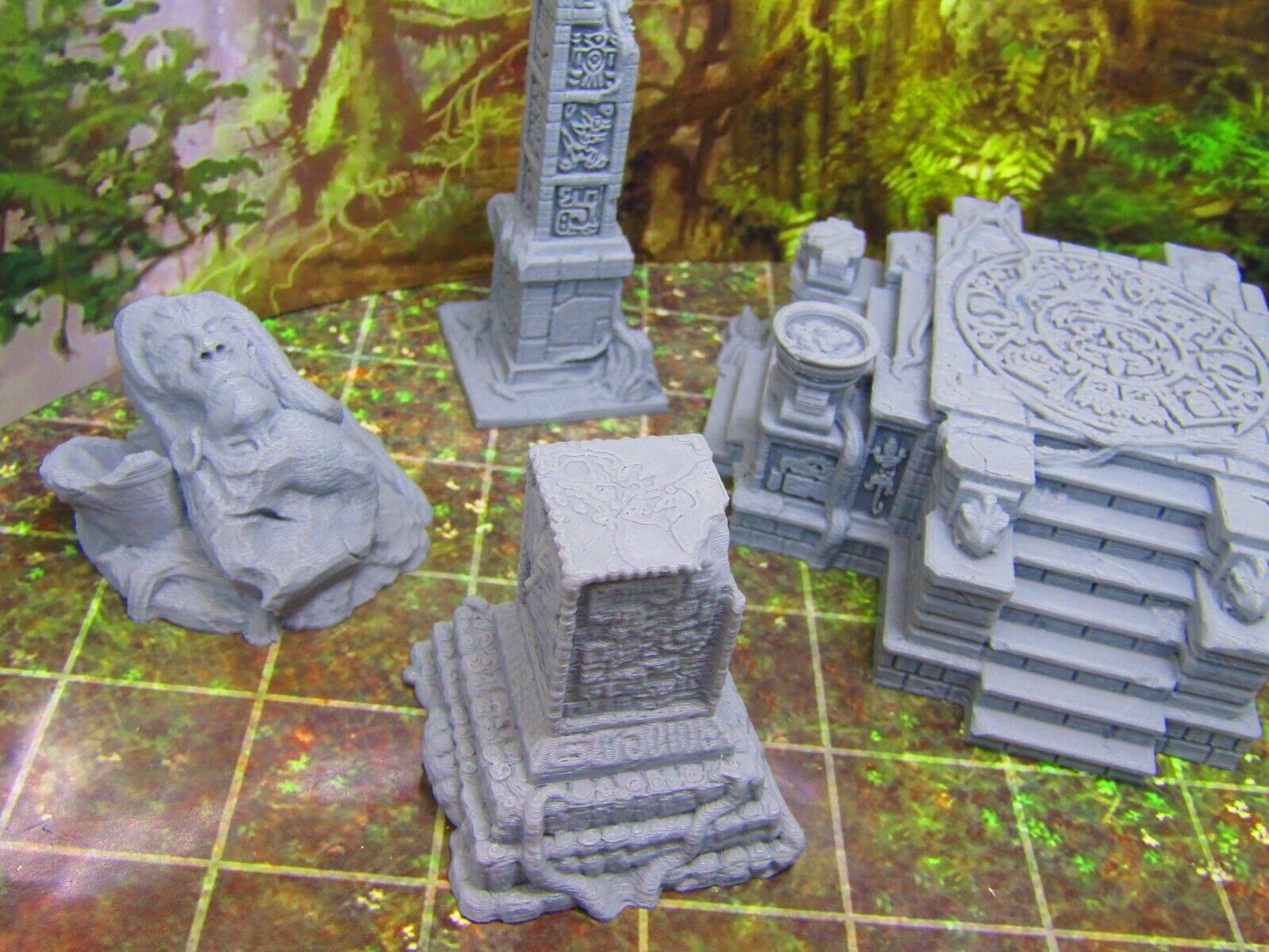7pc Ancient Jungle Temple Ruins Scatter Terrain Scenery 3D Printed Model 28/32mm