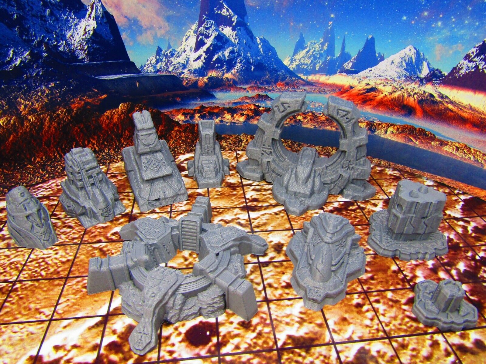 8 pc Ancient Runic Artifact Ruins Miniature Scatter Terrain Scenery 3D Printed