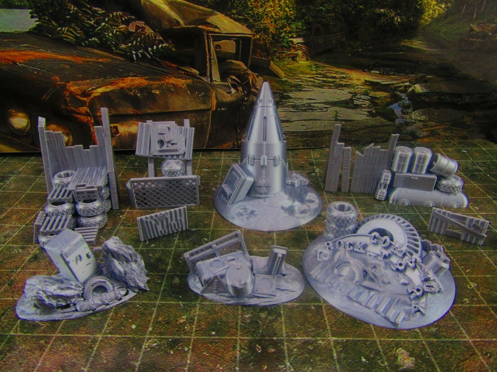 9pc Junkyard Metal Scrap Yard Set Scatter Terrain Scenery Wasteland Apocalypse