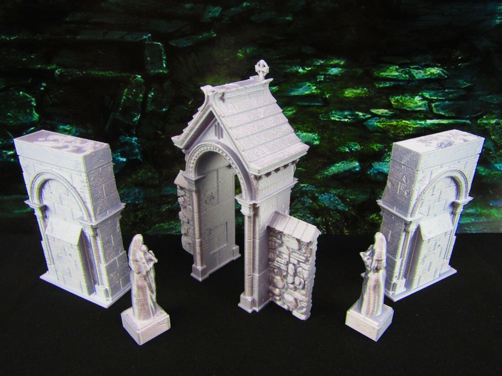 Cemetery Arched Entryway Entrance w/ Statues Graveyard Scatter Terrain 3D Print