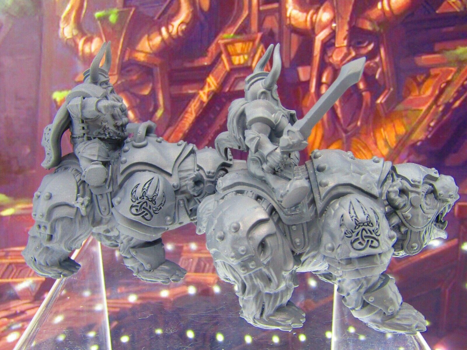 Dwarven King & Queen Pair Battle Ready on War Bears Miniature Figure 3D Print