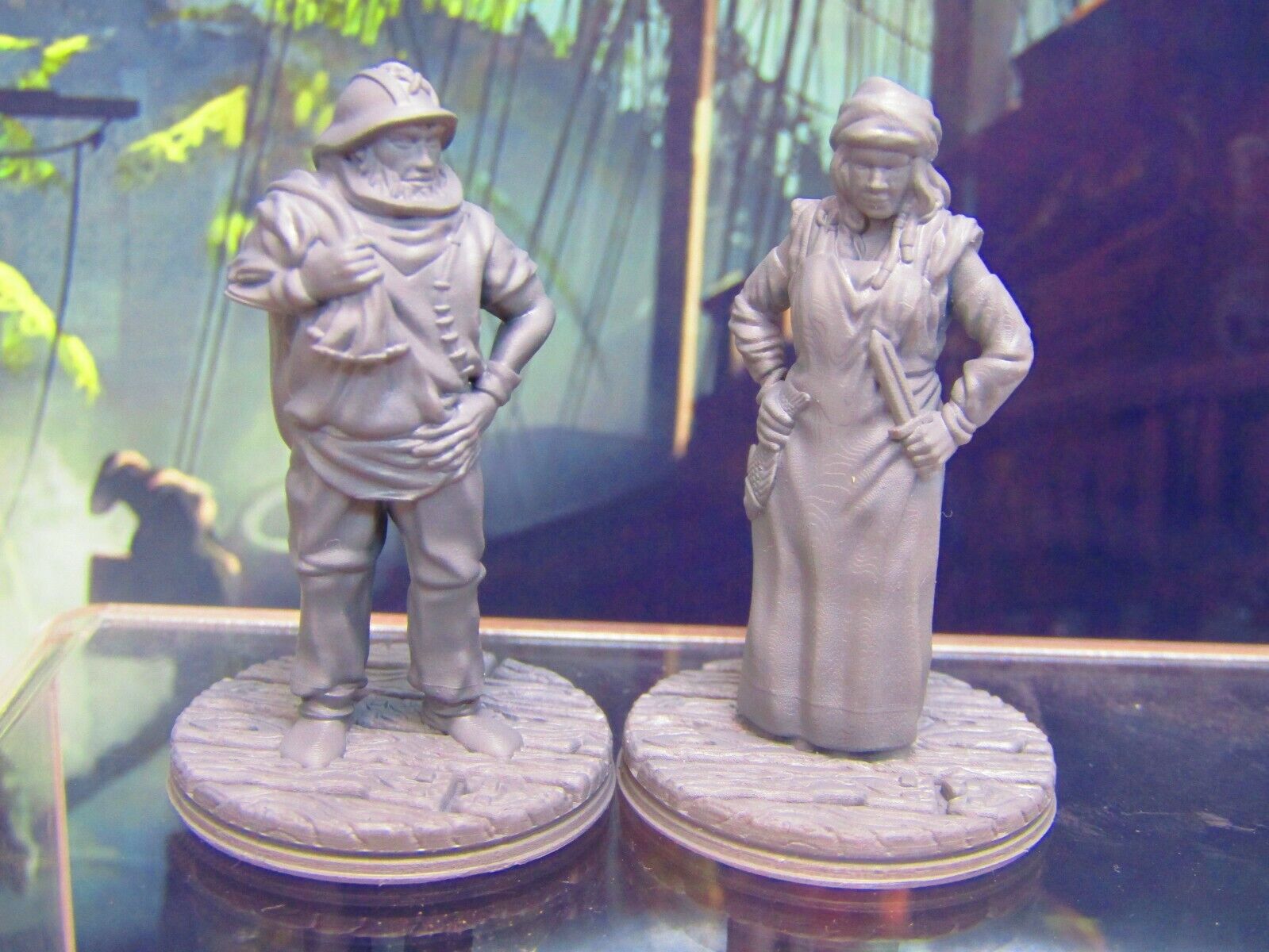 Fisherman + Wife Seaside Fishfolk Mini Miniature Figure 3D Printed Model 28/32mm