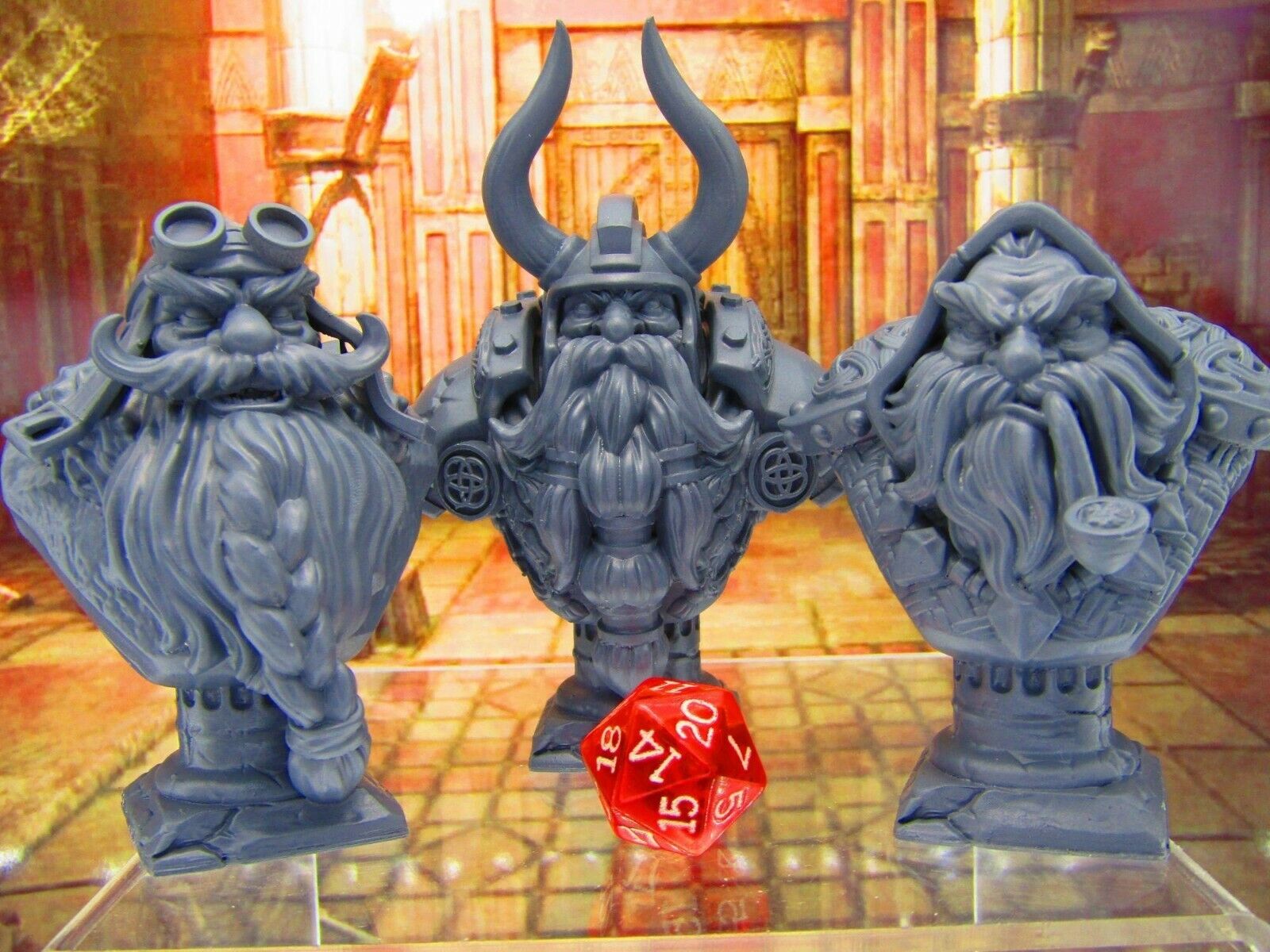 Lot of 3 Dwarven Busts Statue Bust Statue Resin 3D Printed Model RPG Fantasy DnD