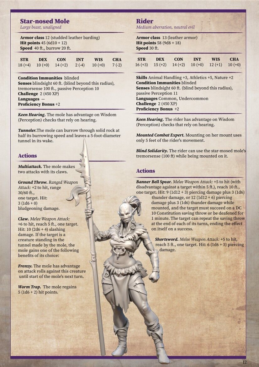 Male Mole Rider W/ Mole Mini Miniature Model Figure RPG Tabletop Gaming D&D etc