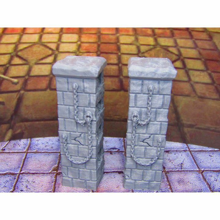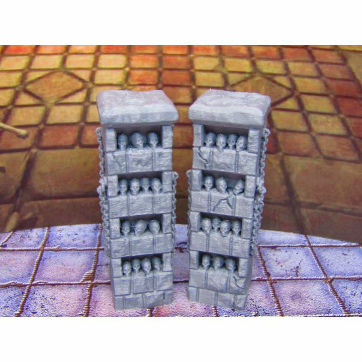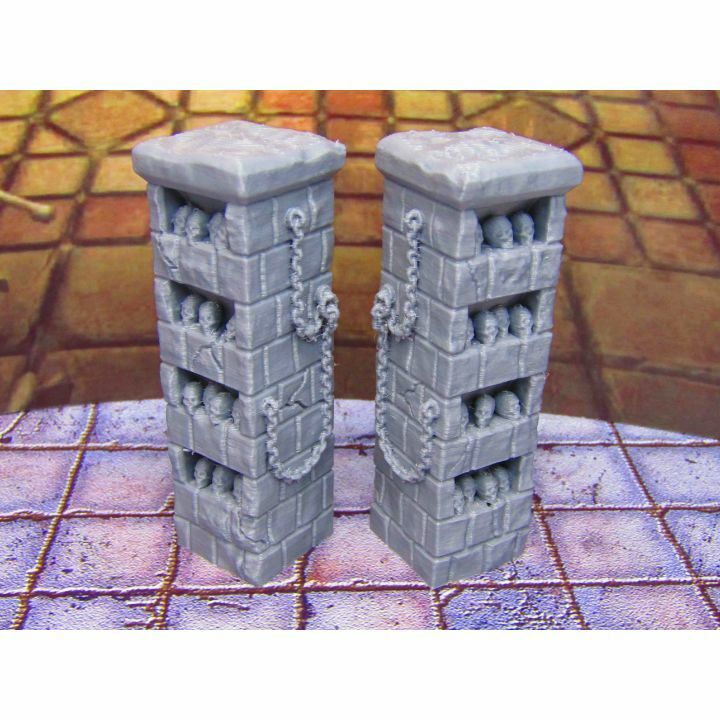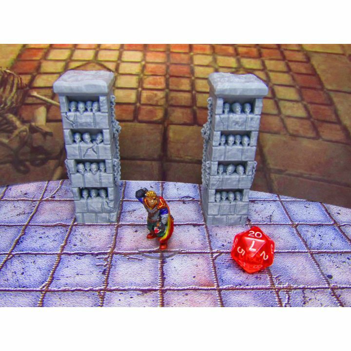 Pair of Skull Pillar Columns Shelves Scenery Scatter Terrain Props 3D Printed