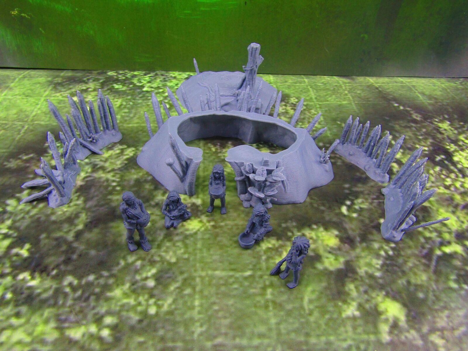 Prehistoric Cave & Wall Sections W/ 5pc Caveman Women & Children Set