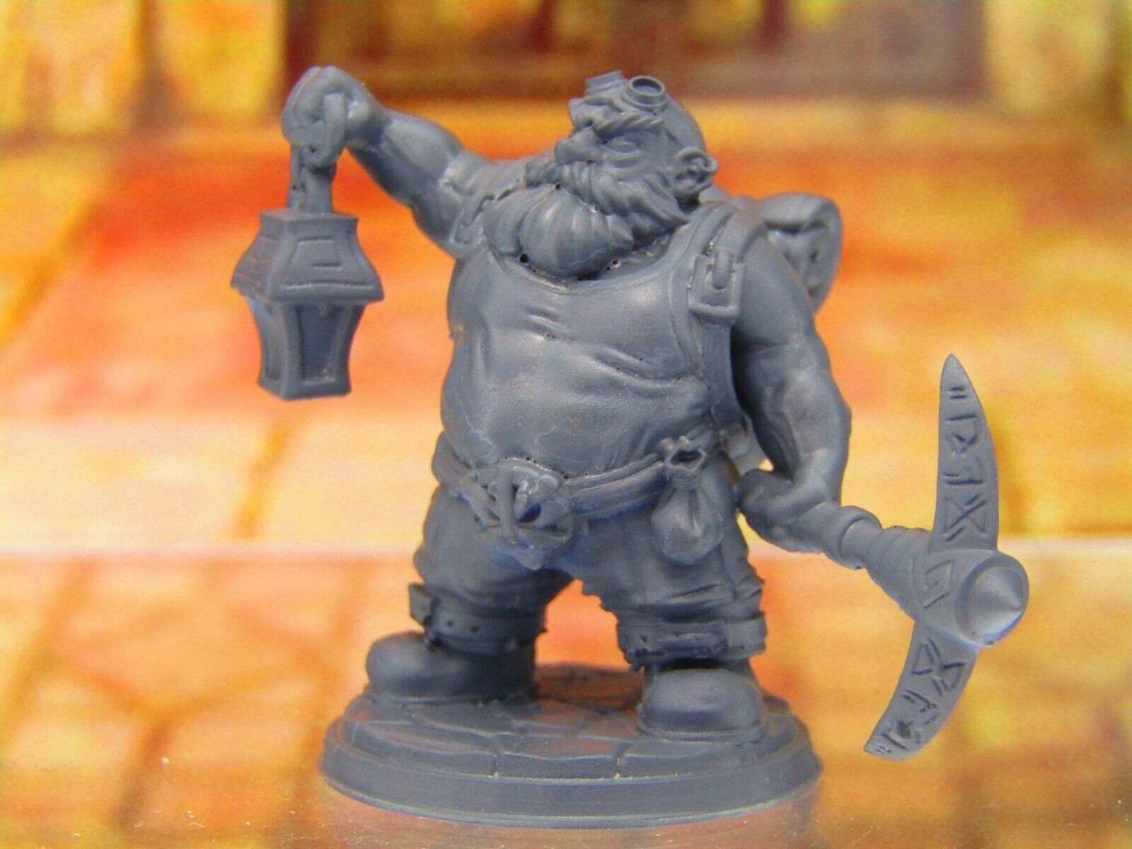 Rufus Breakrock Deep Mine Ore Miner w/ Lamp Dwarf Mini Miniature 3D Print Dnd