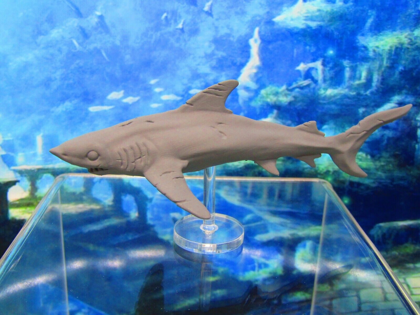 Scarred Battleworn Underwater Shark With Rod & Stand Mini Miniature 3D Printed