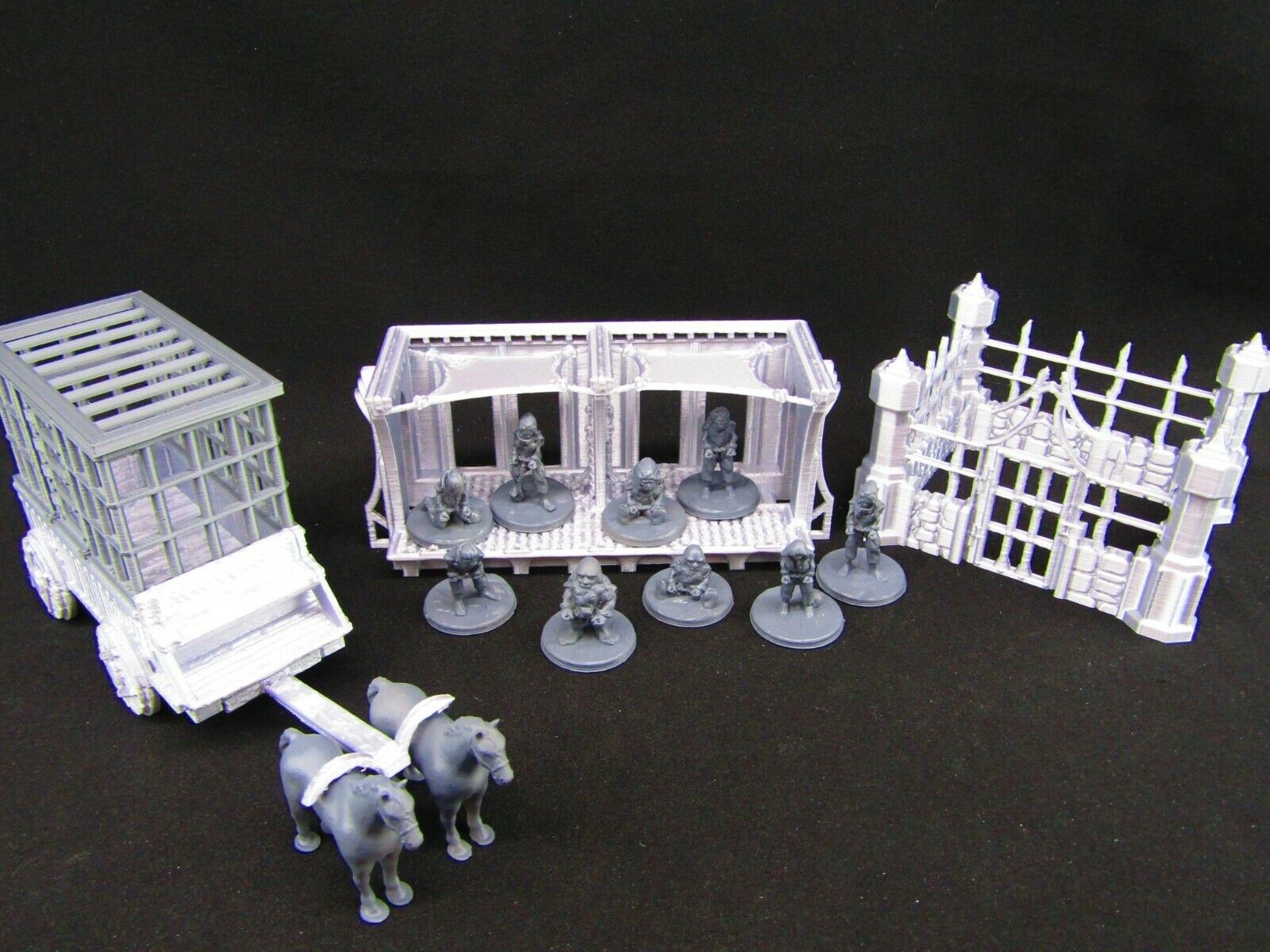 Slave Auction Block w/ Wagon & Prison Cell Scatter Terrain Scenery 3D Printed