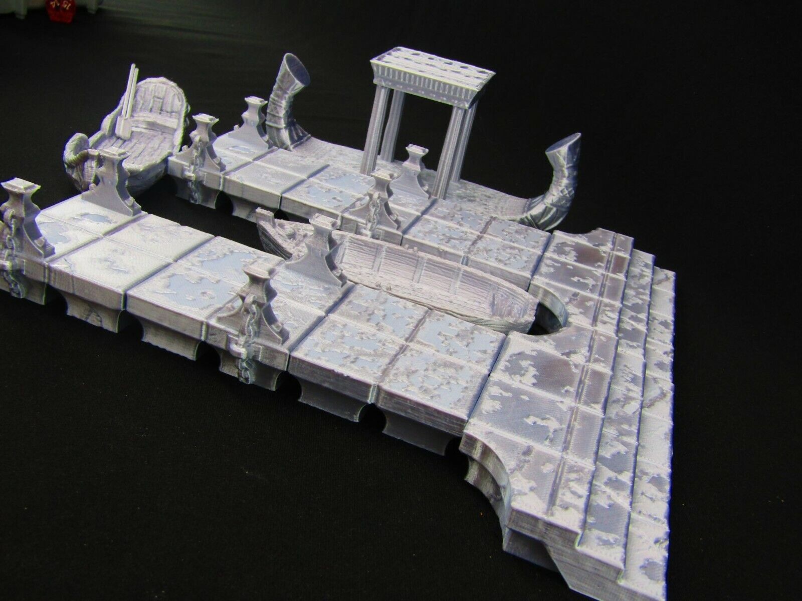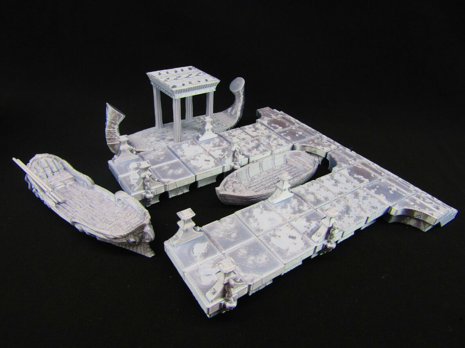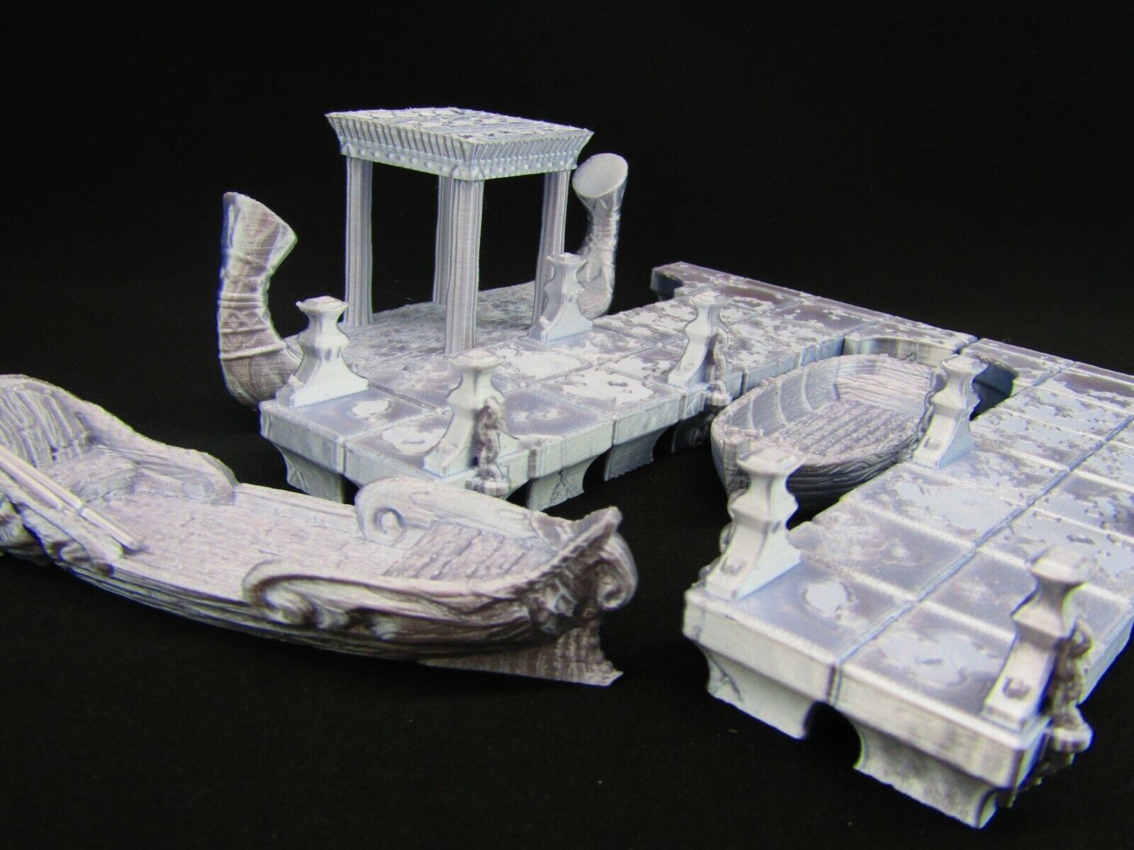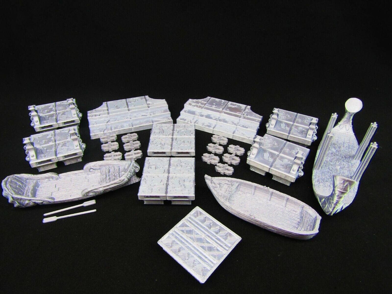 Stone Boating Docks Pier & 3 Ships Scatter Terrain Scenery 3D Printed Mini