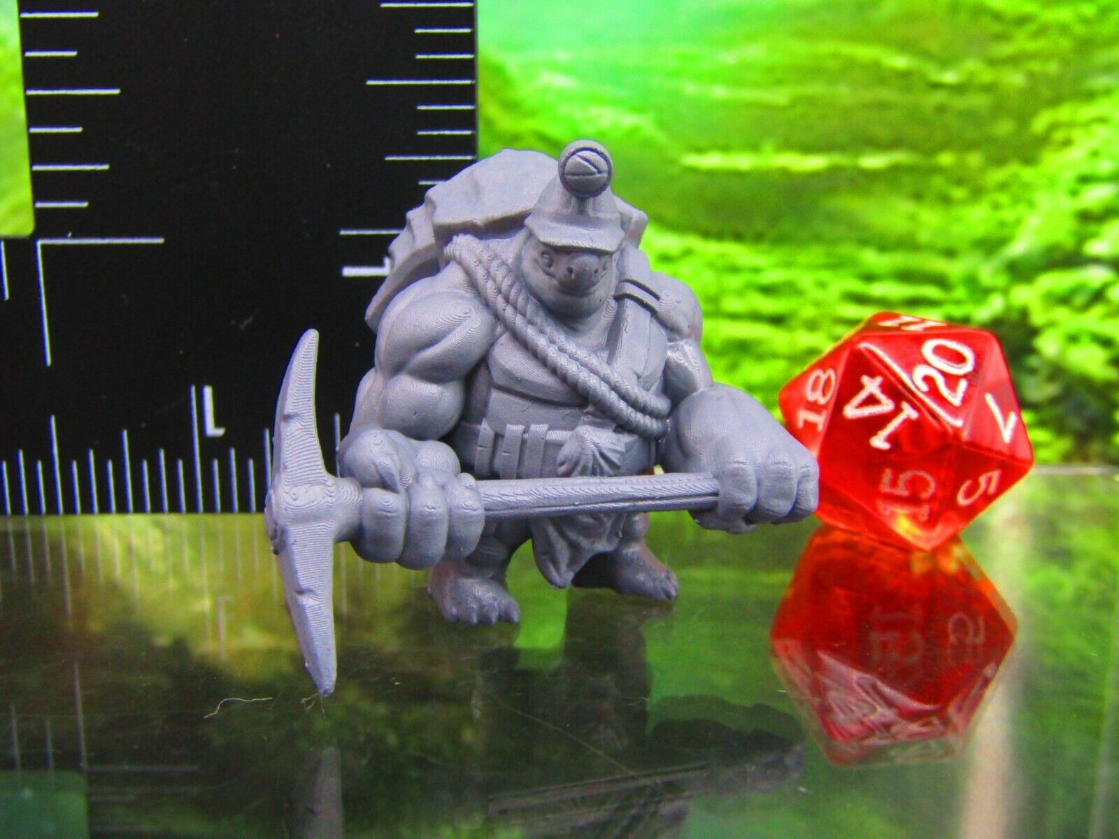 Tortle Miner w/ Pickaxe Mini Miniatures 3D Printed Model 28/32mm Scale RPG