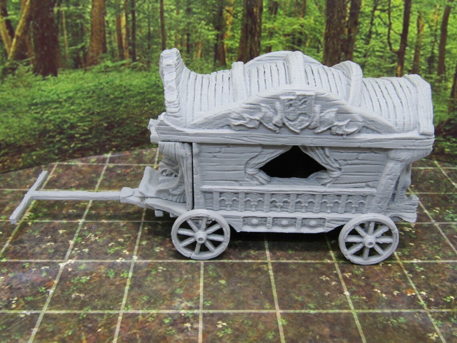 Travelling Merchant's Wagon & Horses Scenery Terrain 3D Printed Model 28/32mm