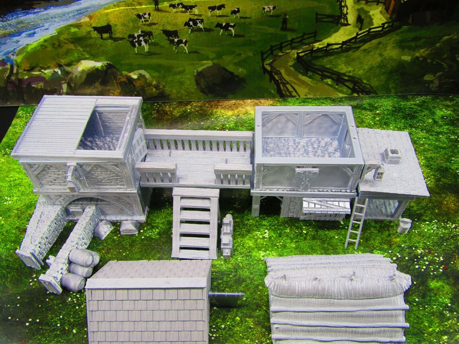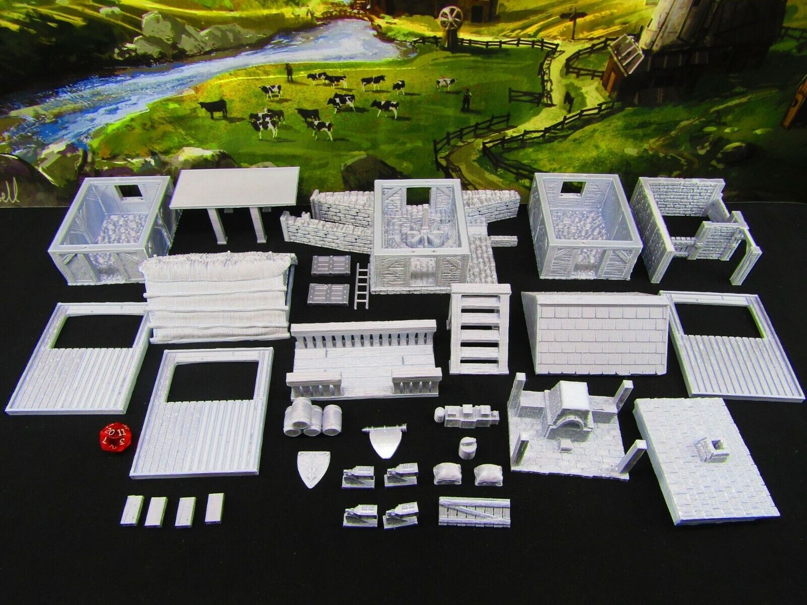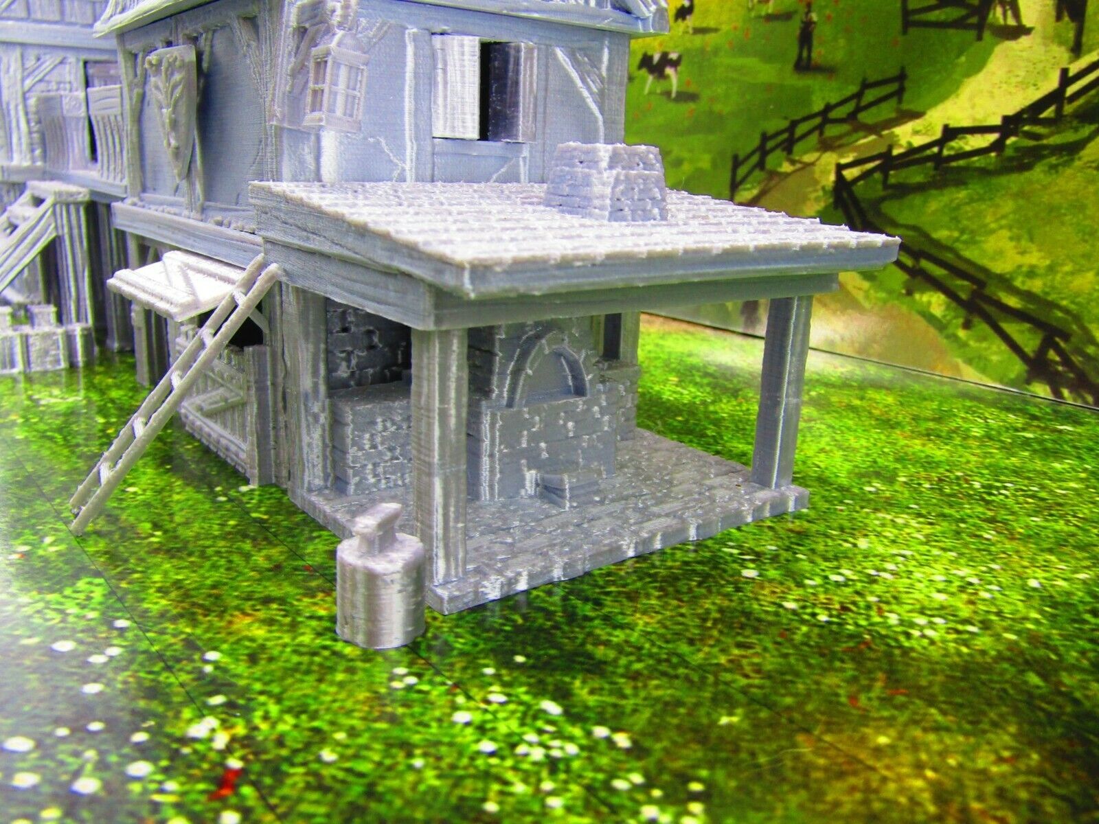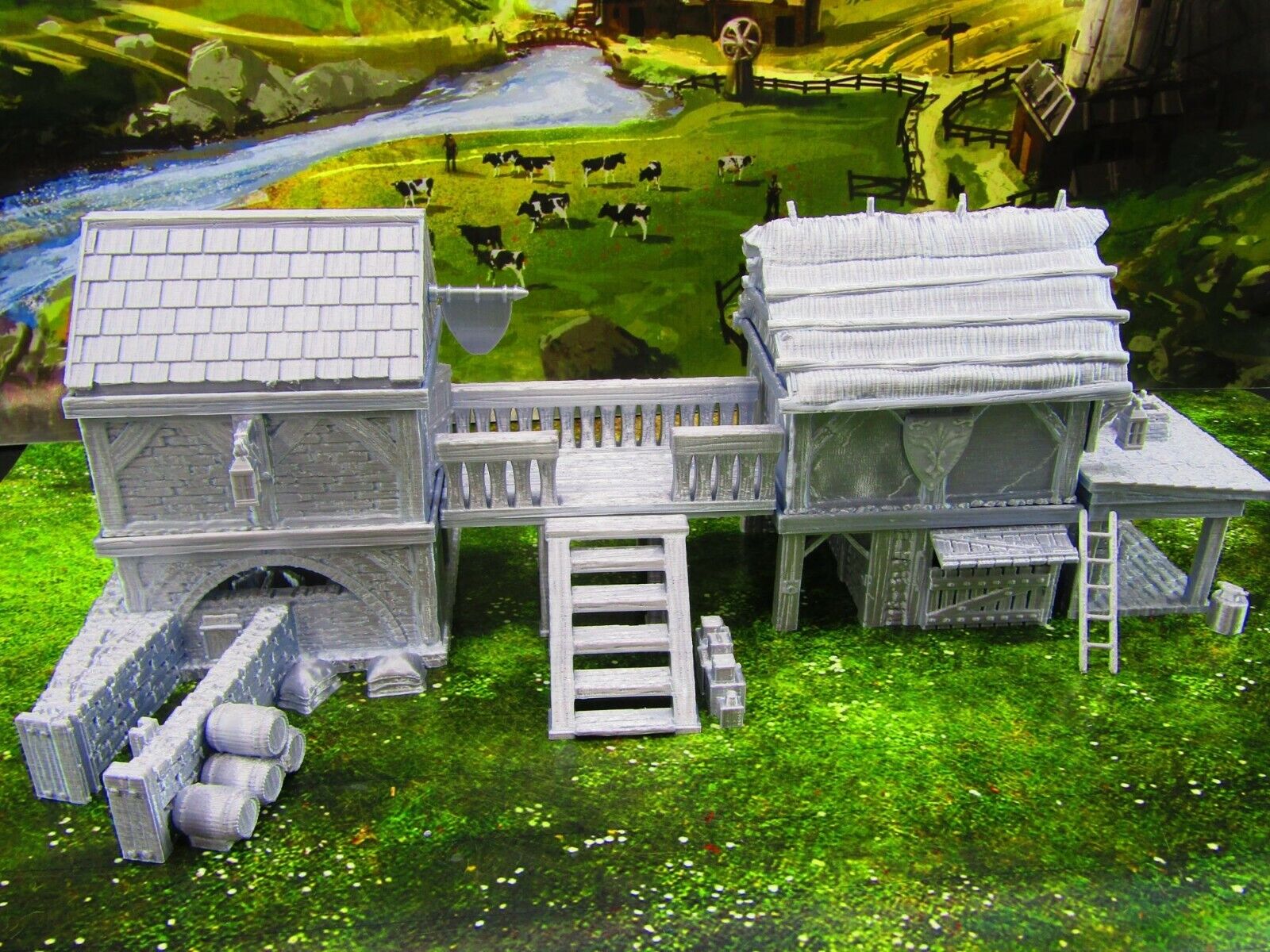 Village Center Mill, Stable, Blacksmith, & Shops Scatter Terrain Scenery 3D